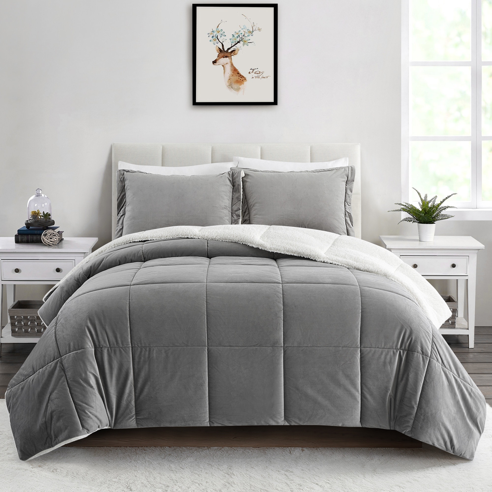 3 Piece Reversible Sherpa&Fauxfur Down Alternative Comforter Set