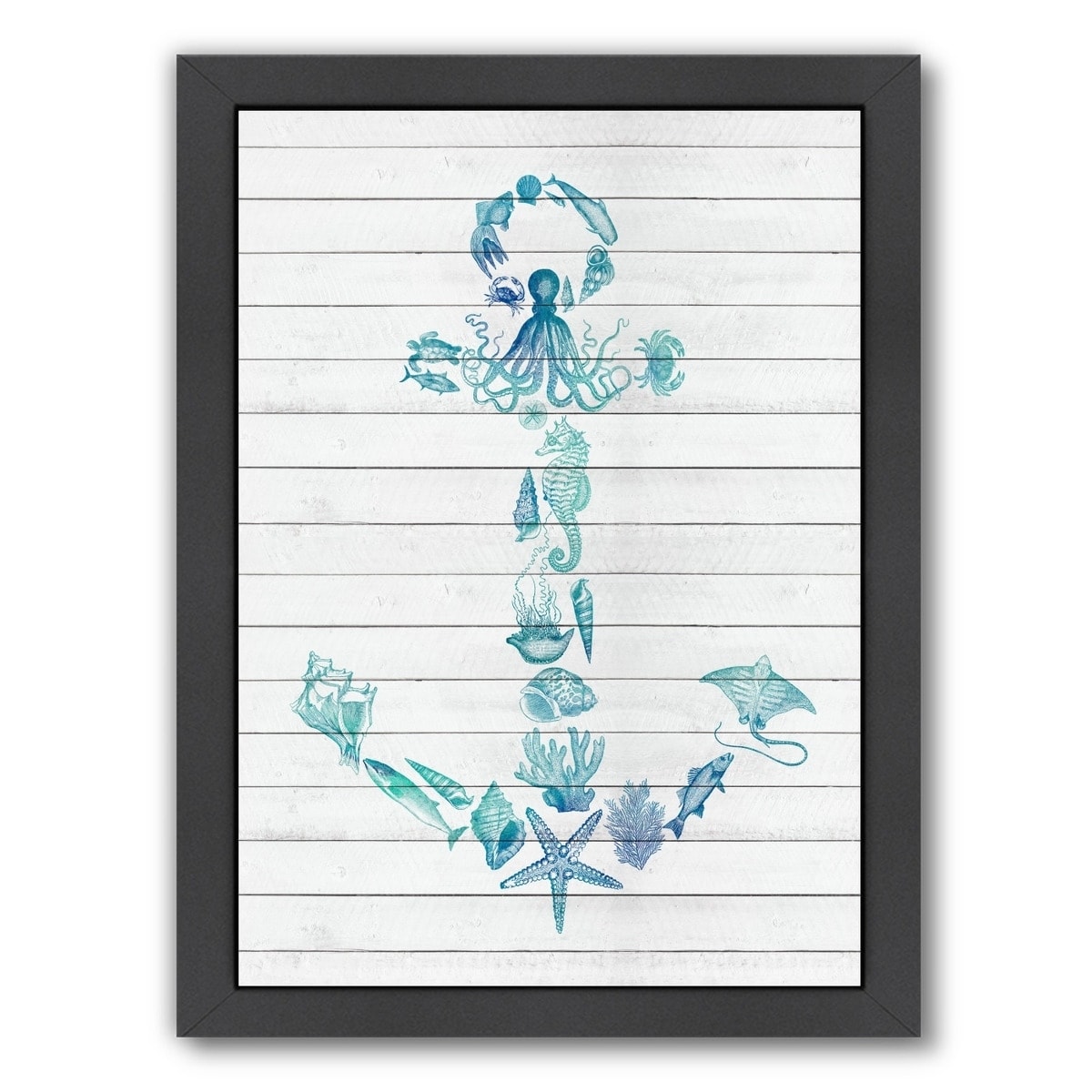 Stupell Industries Striped Anchor Phrase Nautical Beach Illustration Framed Wall Art, Design by Raquel Maciel - Blue