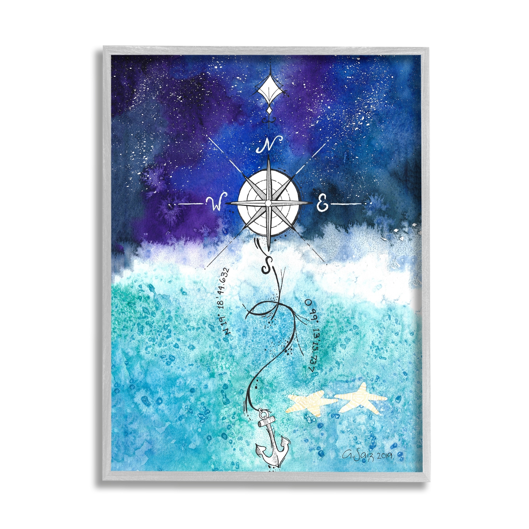 Stupell Industries Night Sky Blue Ombre Ocean Waves Nautical Compass Anchor Framed Wall Art