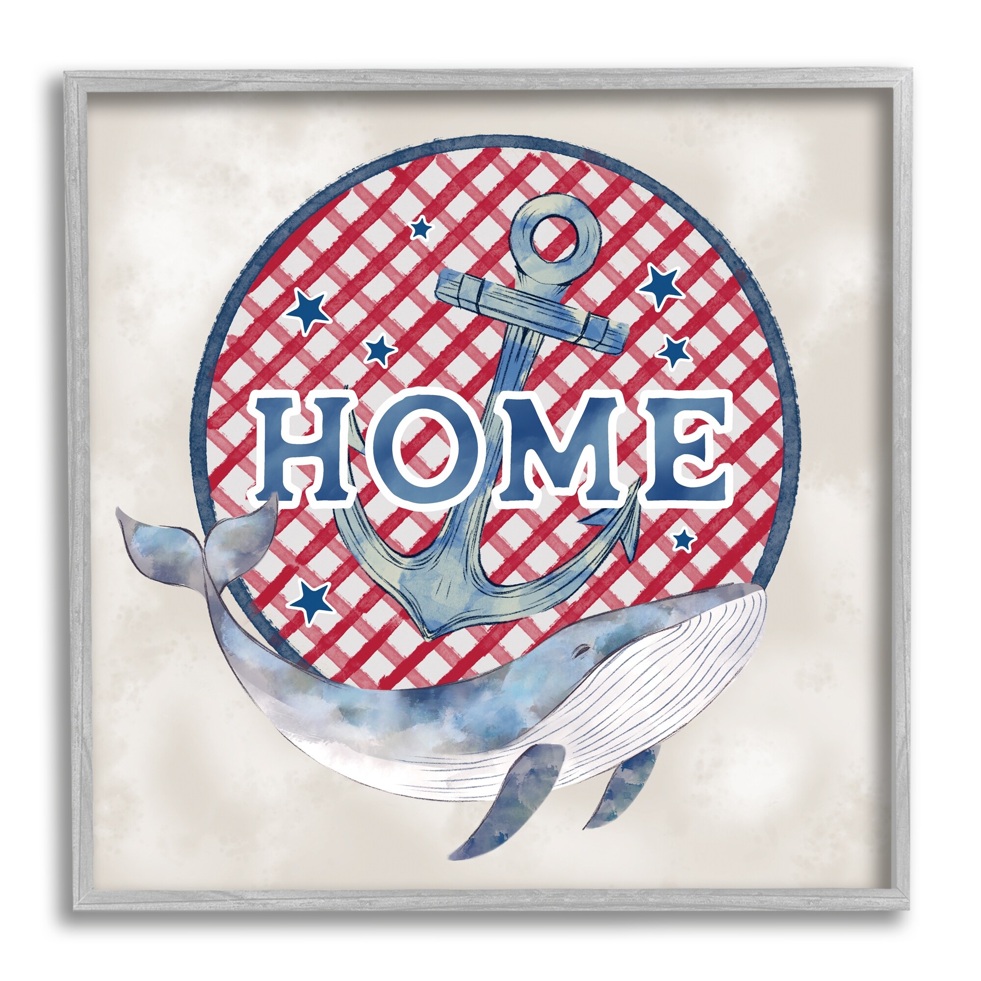 Stupell Industries Checkered Pattern Home Sign Anchor Whale Watercolor Framed Wall Art, Design by Ziwei Li - Multi