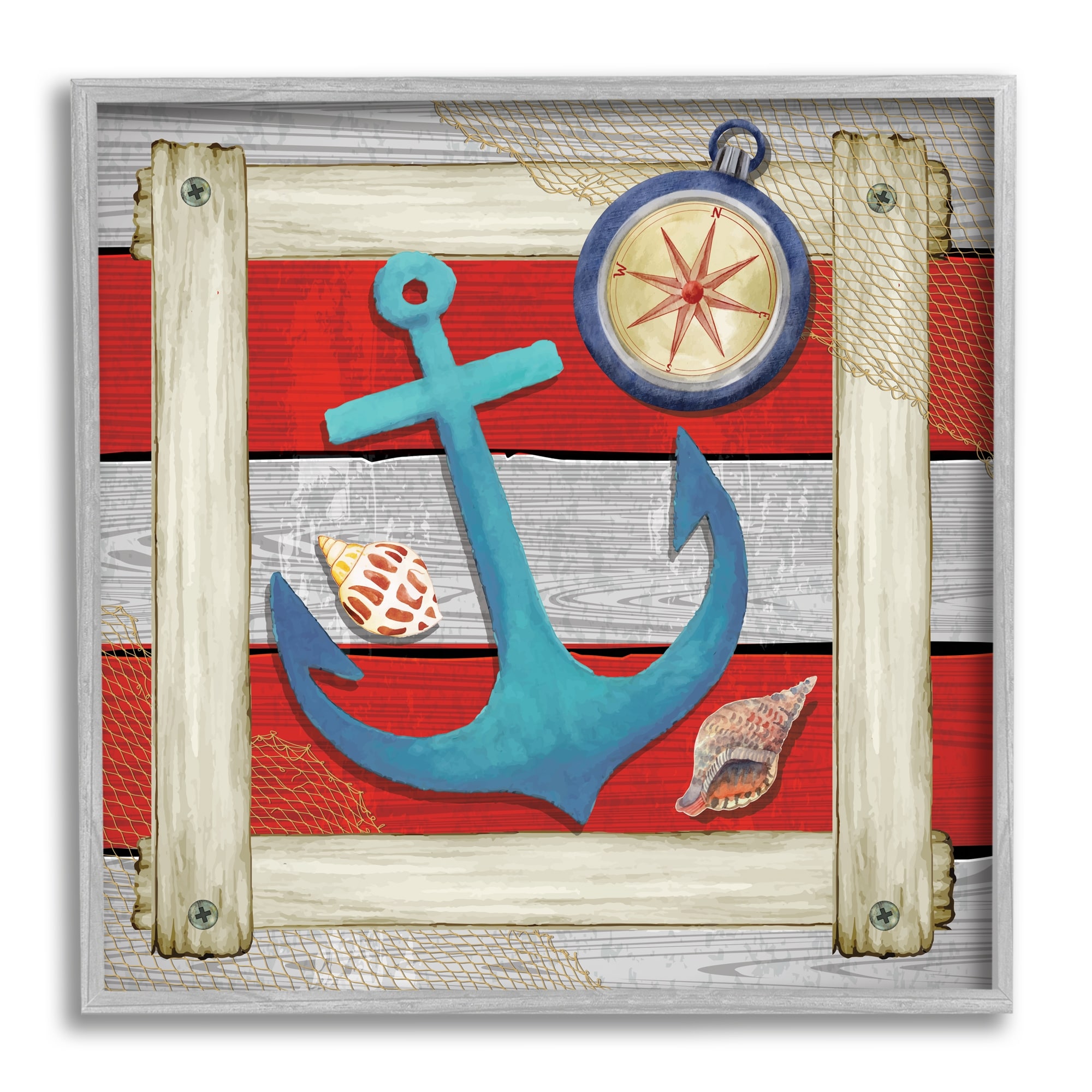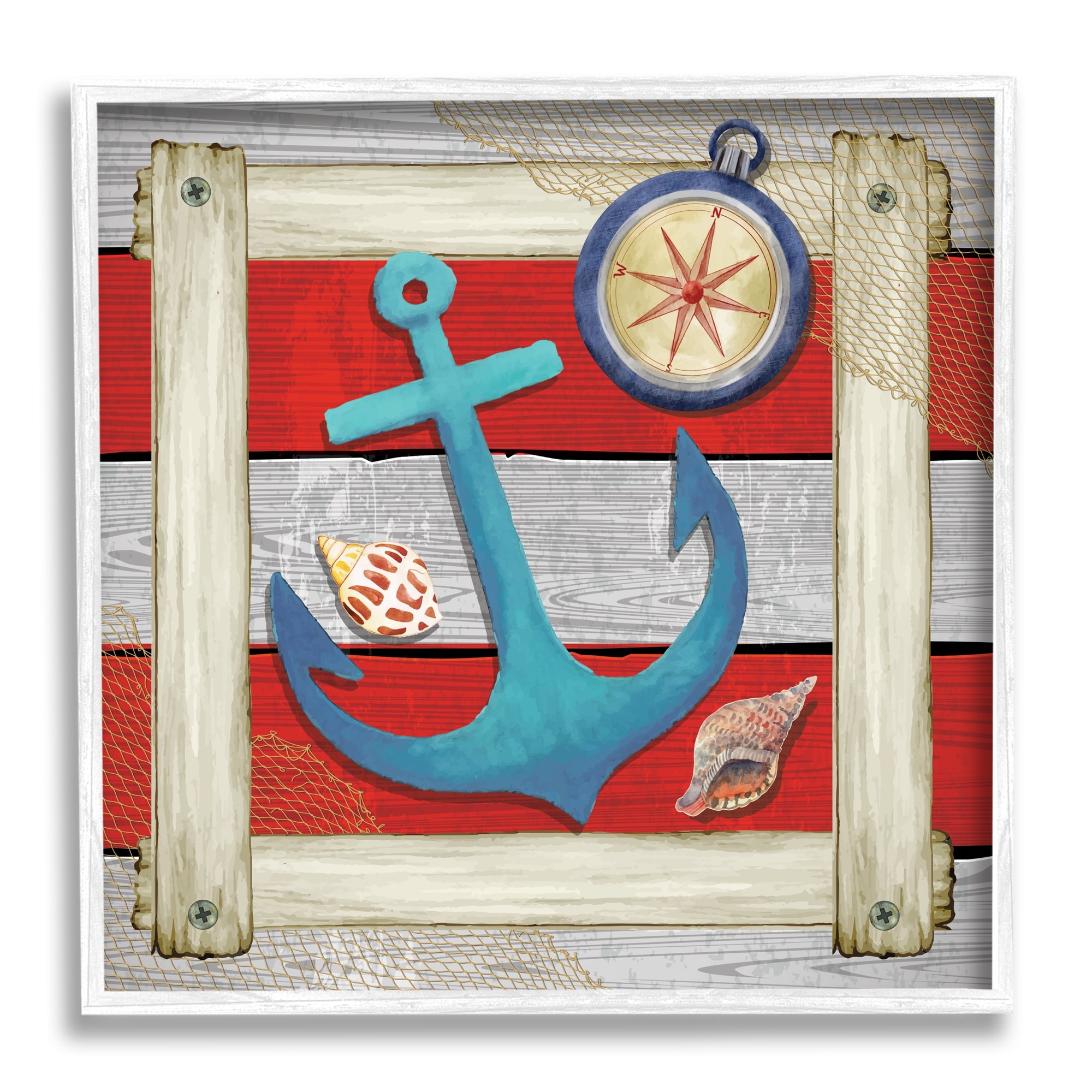 Stupell Industries Maritime Anchor Compass Stripes Framed Giclee Art by ND Art