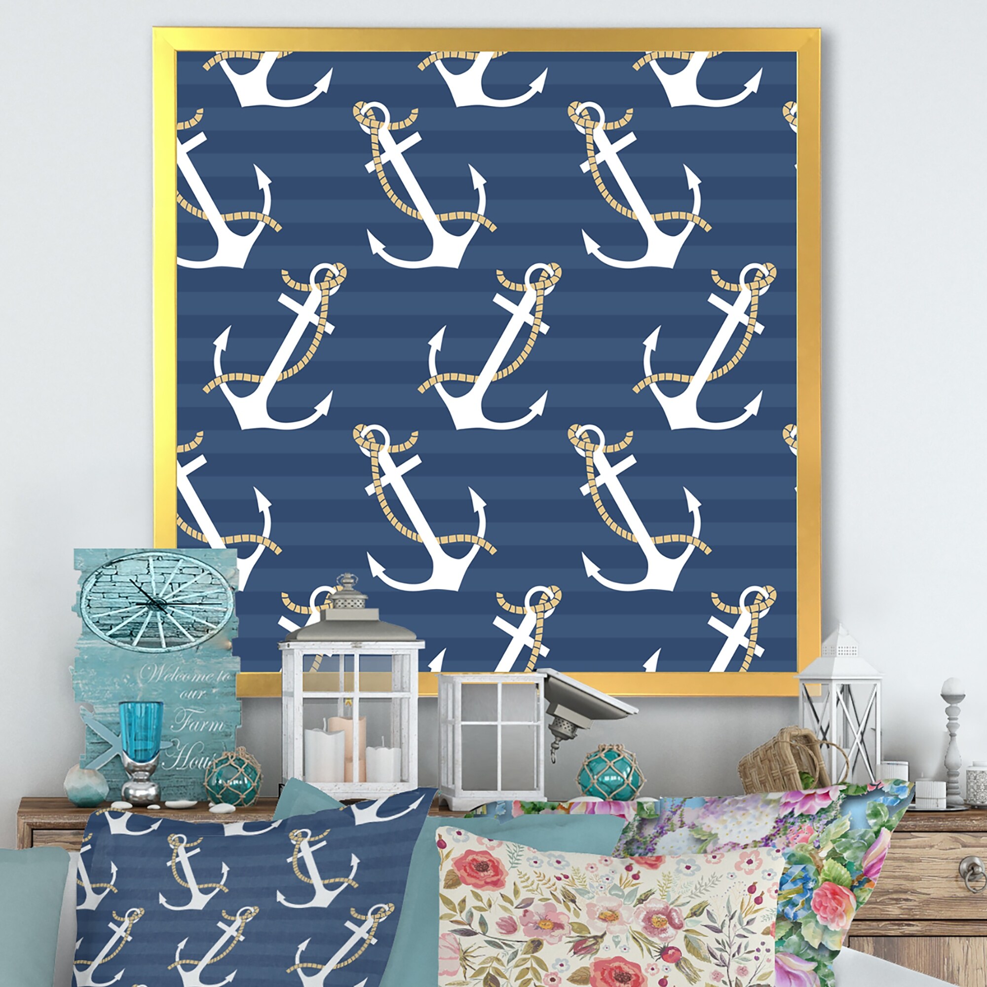 Designart "Anchors Pattern" Patterned Framed Wall Decor