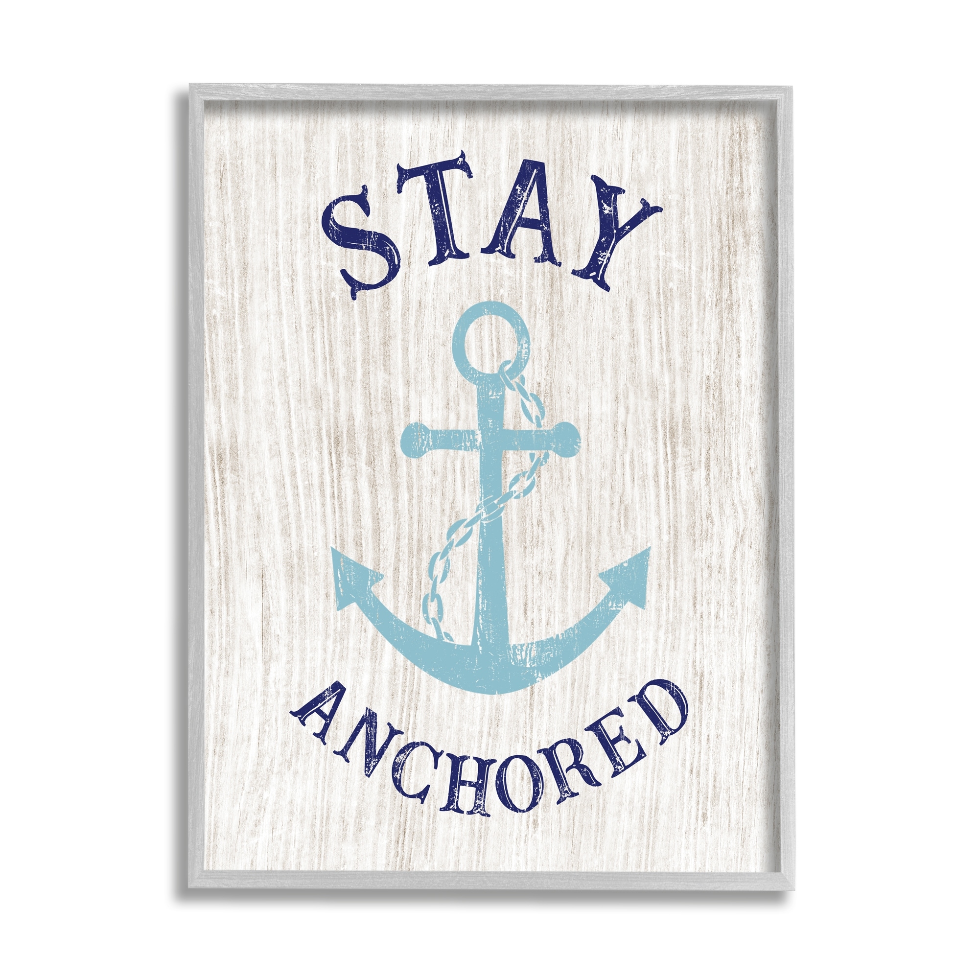Stupell Industries Stay Anchored Rustic Nautical Beach Typography Framed Wall Art, Design by CAD Designs