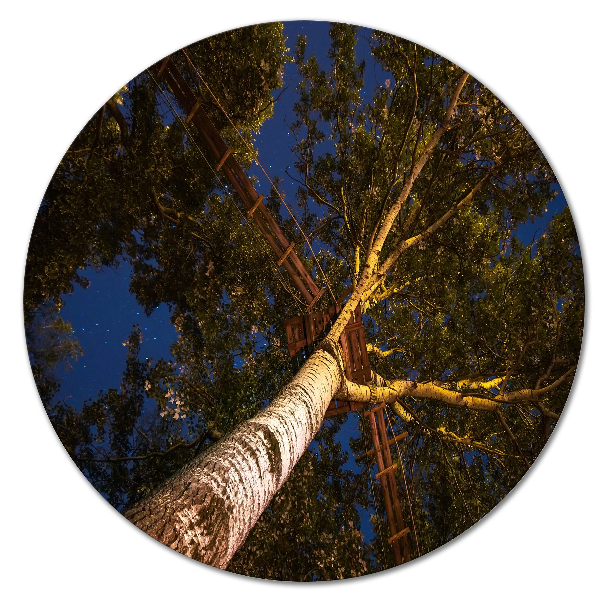 Designart 'Low Angle View of the Trees With A Walkway' Traditional Metal Circle Wall Art