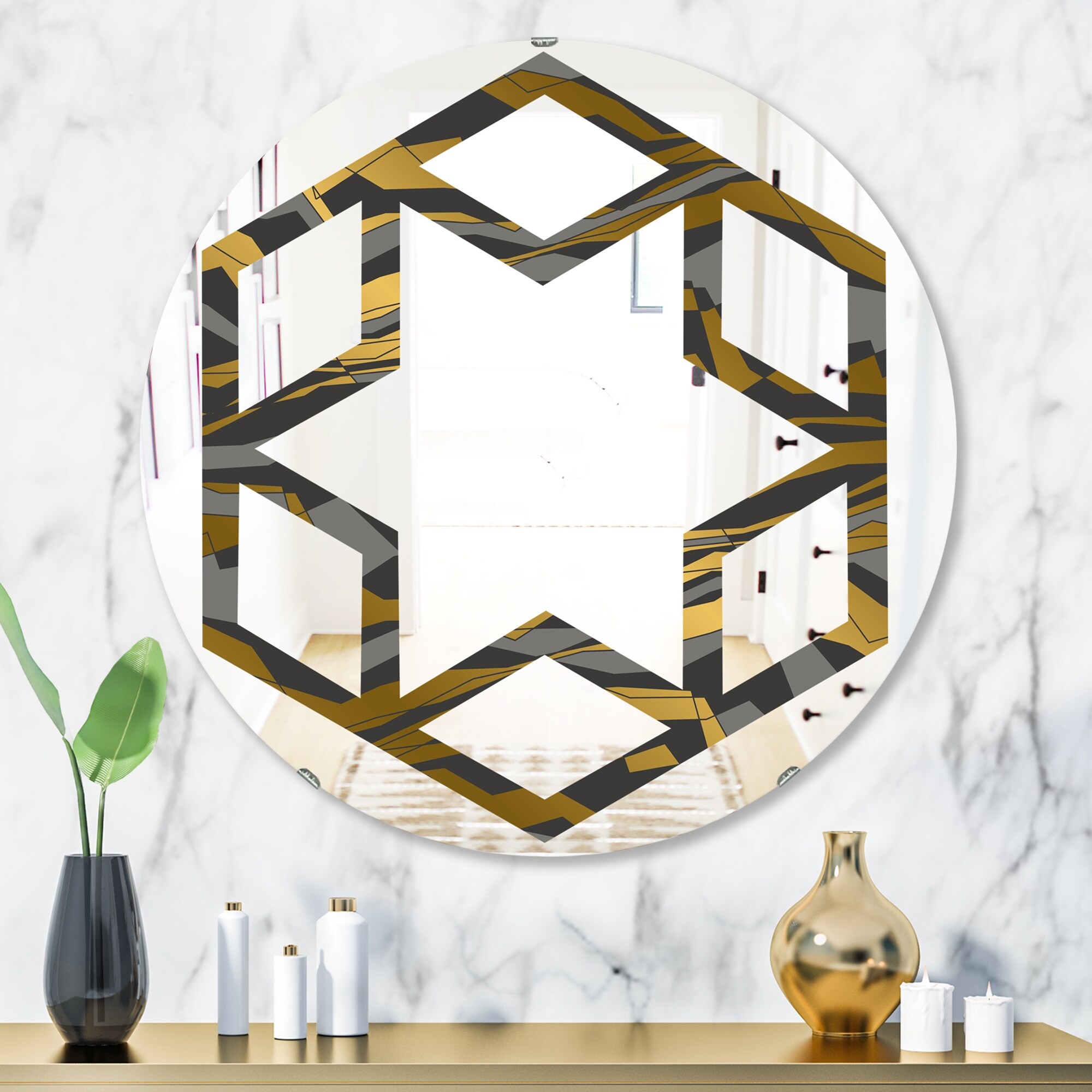 Designart 'Angled lines and waves pattern' Printed Modern Round or Oval Wall Mirror - Hexagon Star