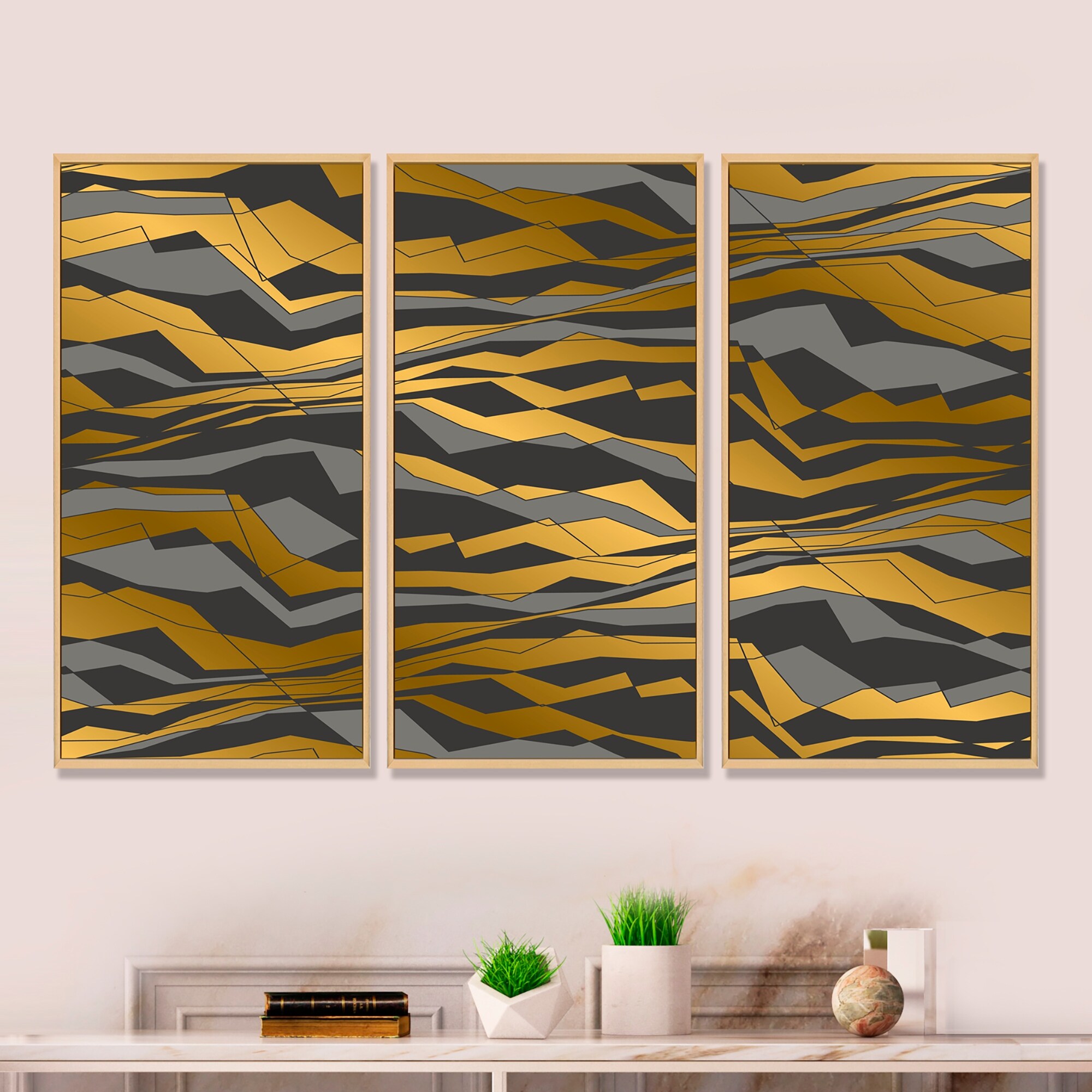 Designart "Angled lines and waves pattern" Mid-Century Modern Framed Art Prints Set of 3 - 4 Colors of Frames