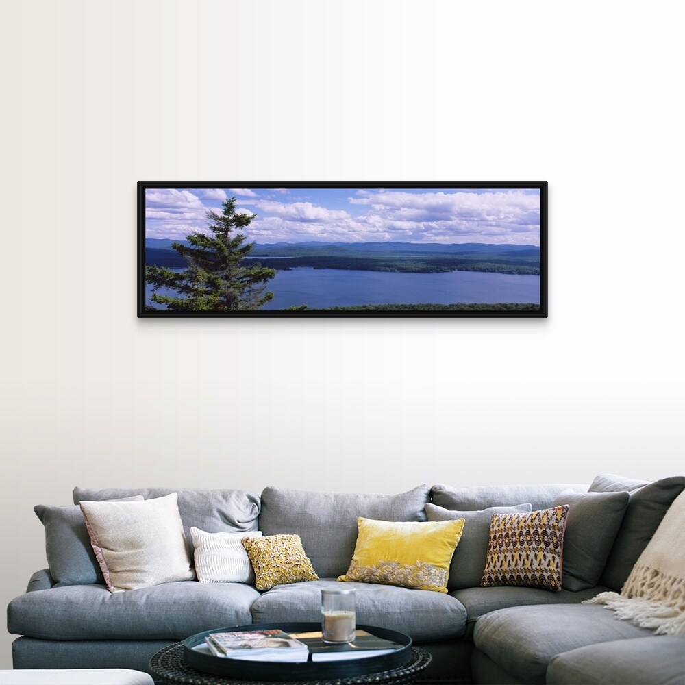 "High angle view of a lake, Piseco Lake, Adirondack Mountains, New York State" Black Float Frame Canvas Art