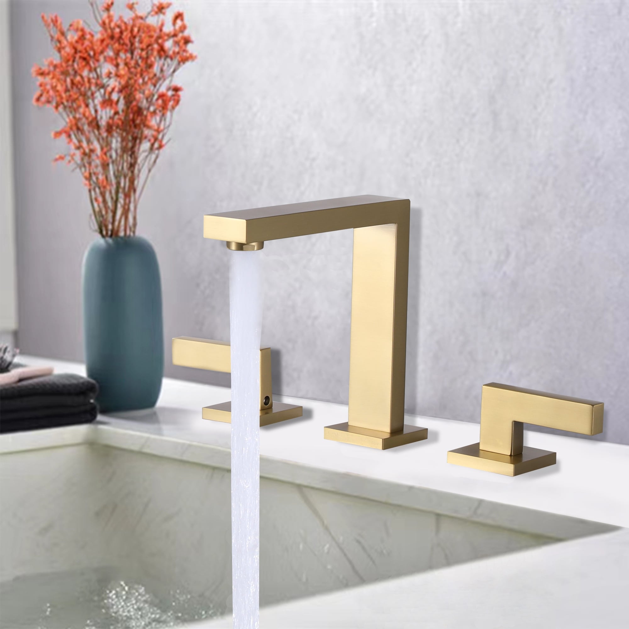 Bathroom Sink Right-angle Faucet 2 Long Handles Widespread in Gold / Black