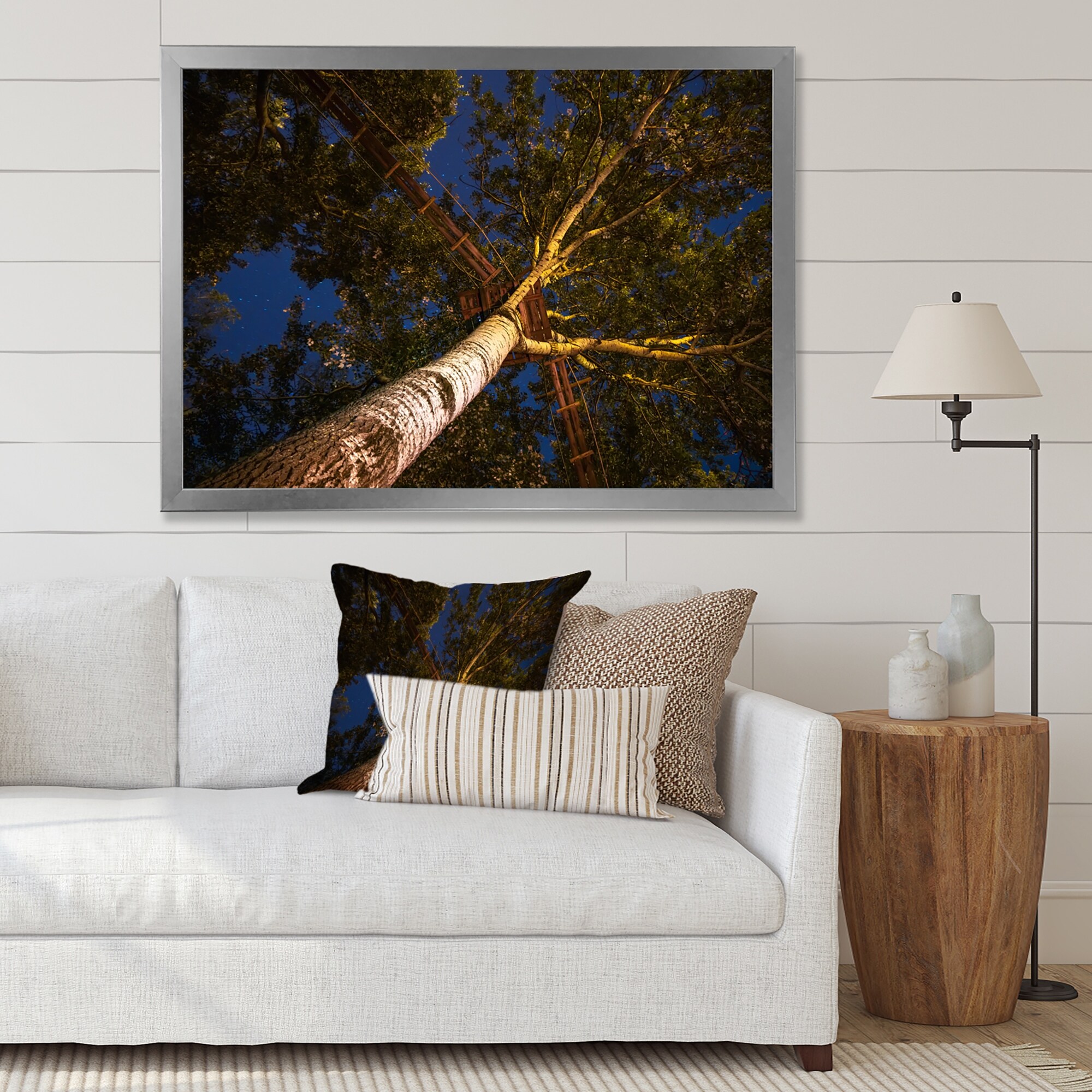 Designart "Low Angle View of the Trees With A Walkway" Traditional Framed Art Print