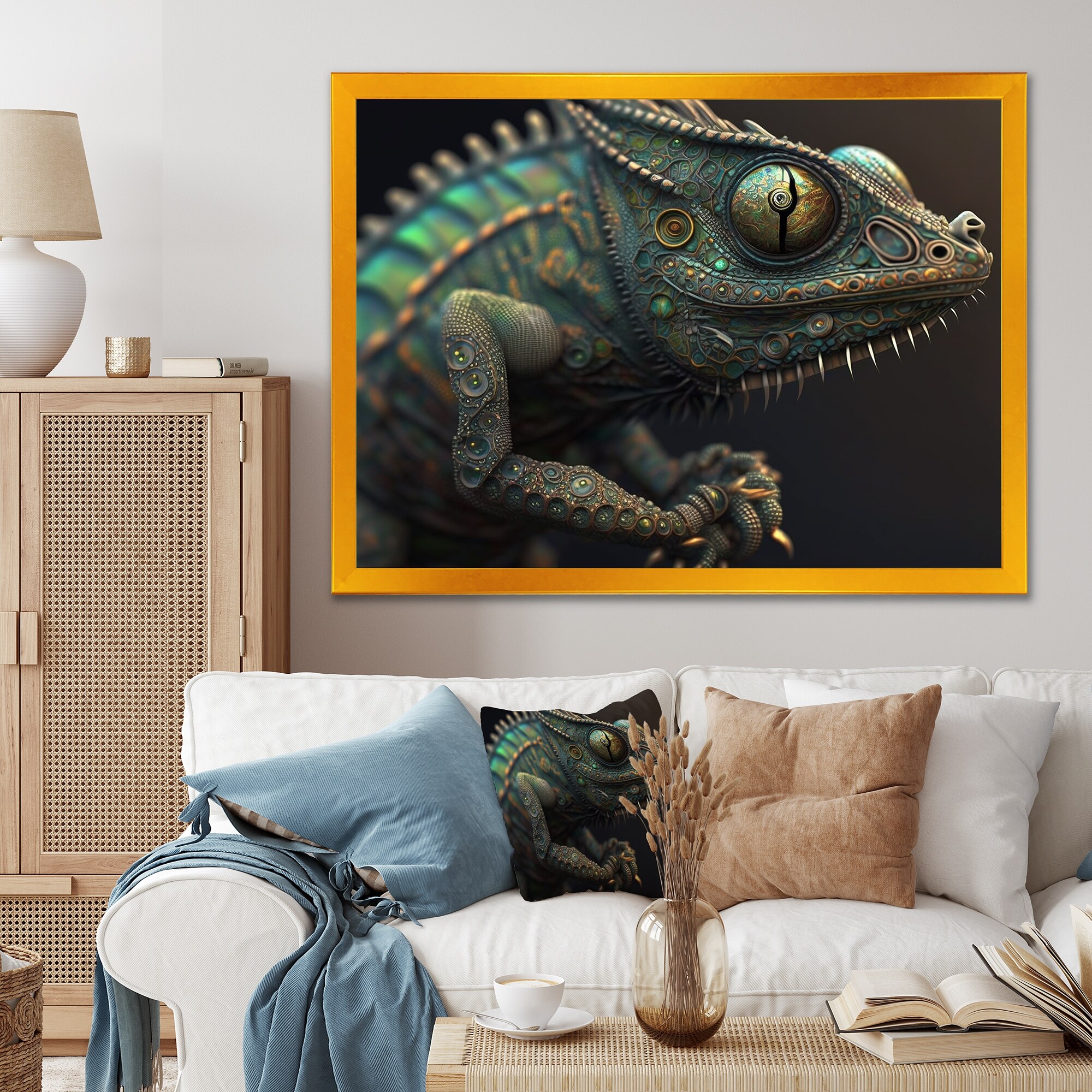Designart "Close-up Of Colourful Cameleon II" Animals Insert Framed Art Print
