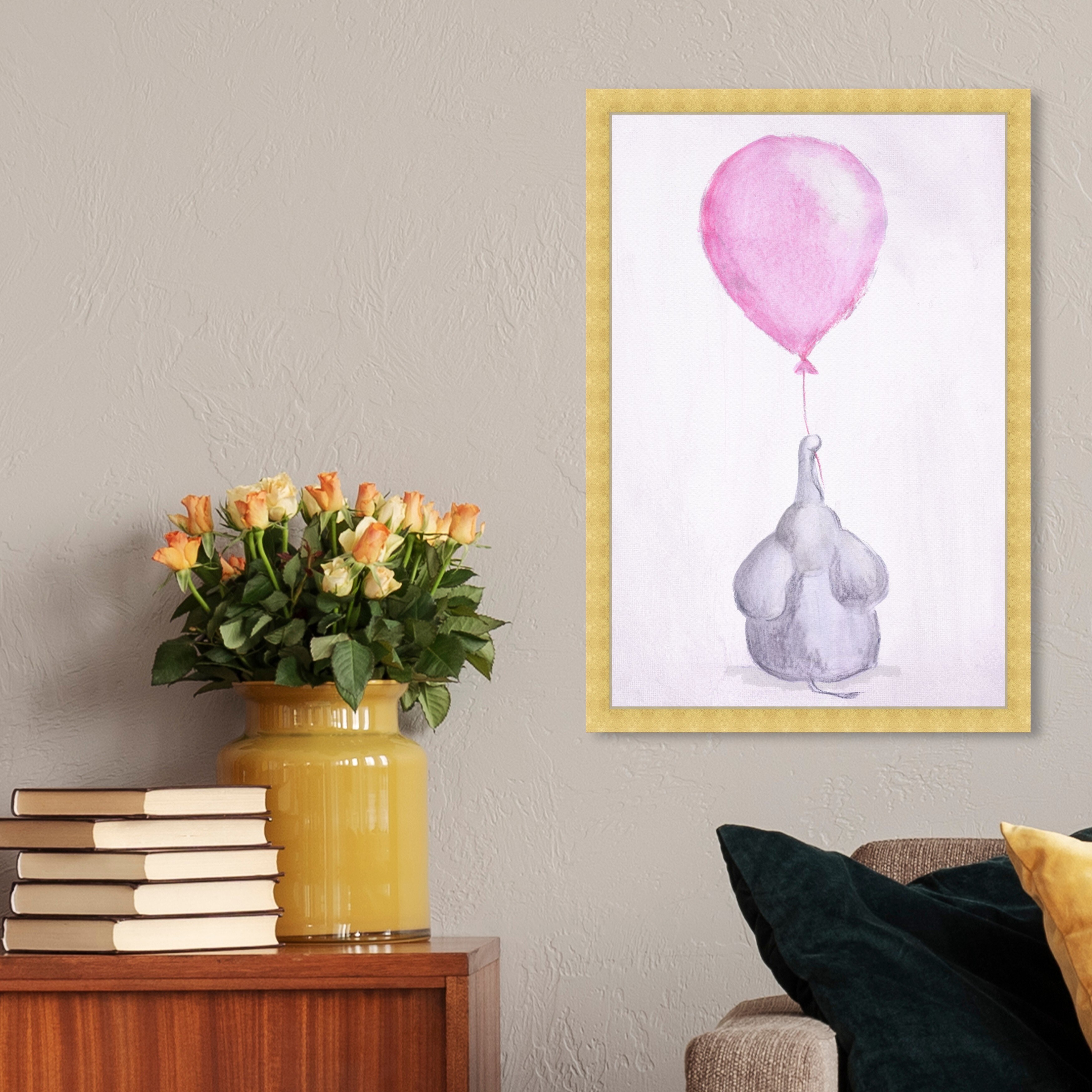 Oliver Gal 'My Pink Balloon' Animals Wall Art Framed Print Zoo and Wild Animals - Pink, Gray