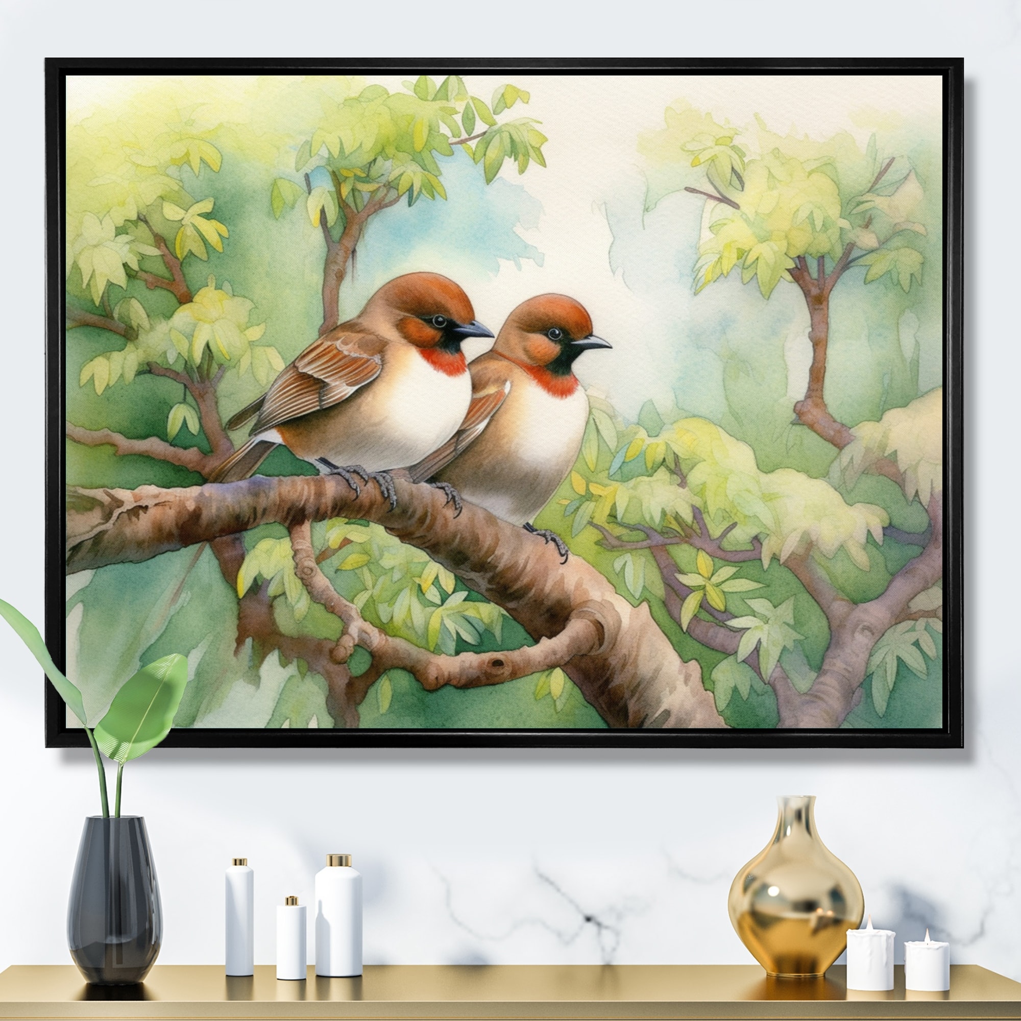 Designart "Birds Of Spring I" Animals Bird Framed Wall Art Prints