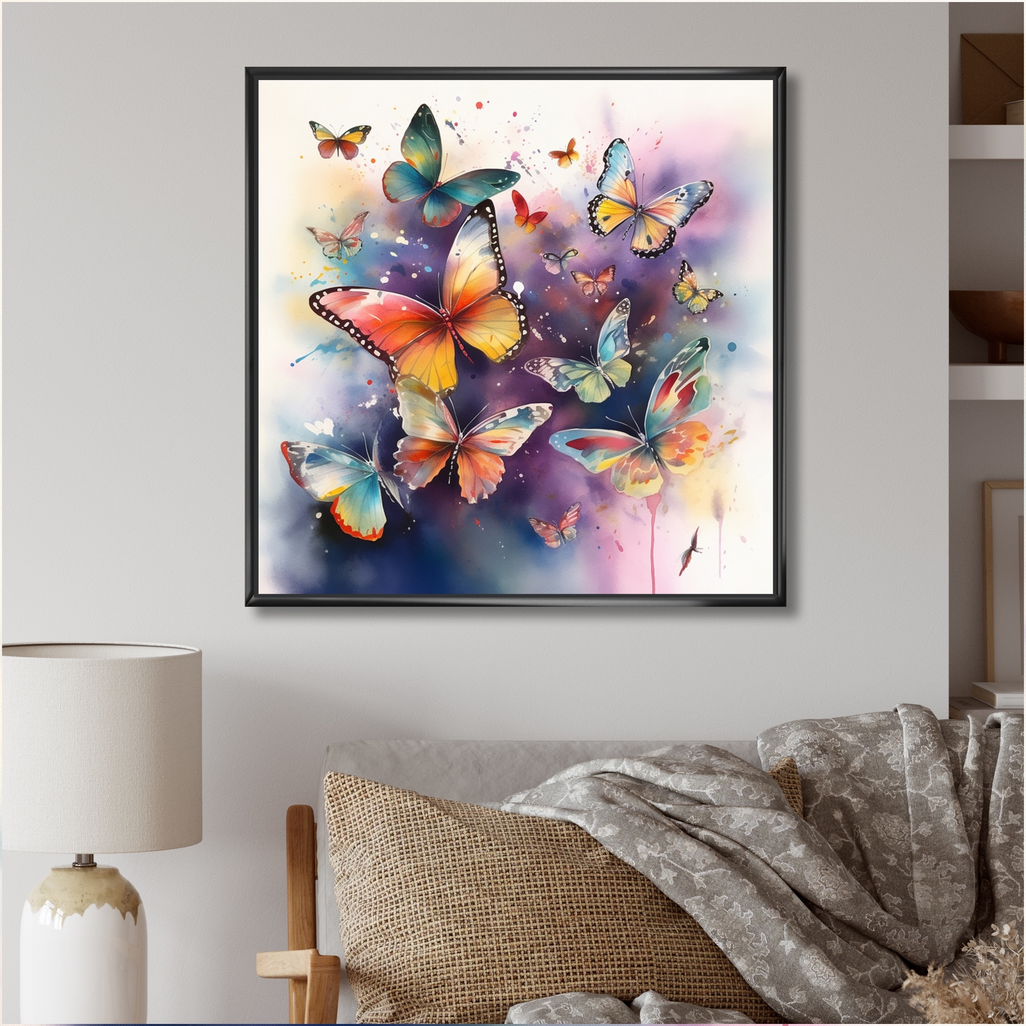 Designart "Purple Butterflies in the Air" Animals Butterfly Framed Canvas Wall Art