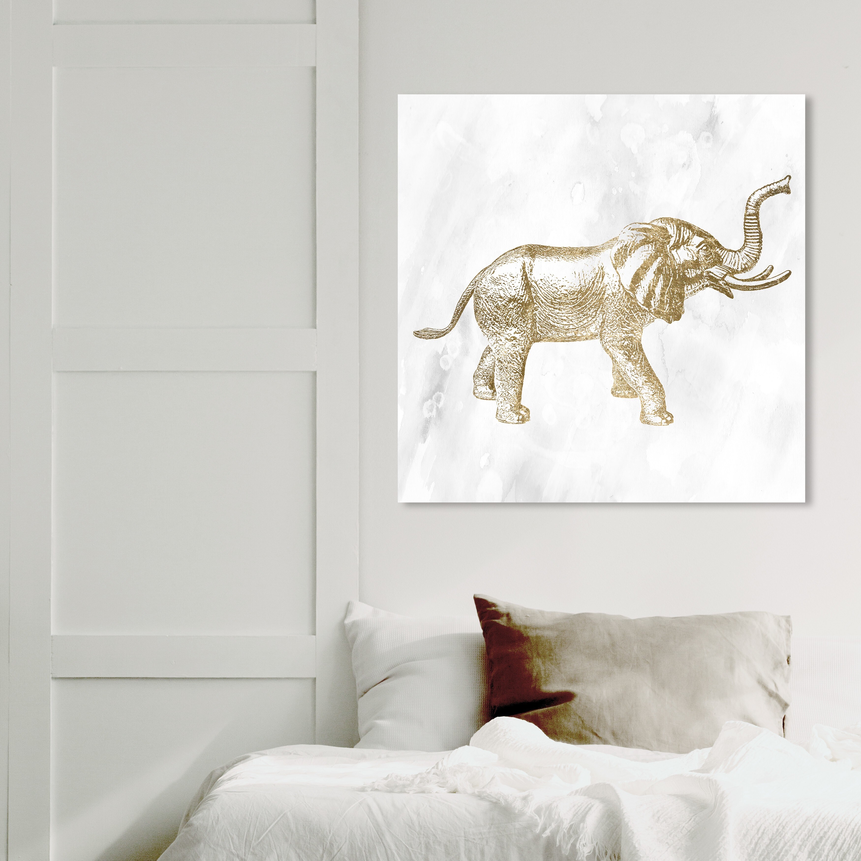 Oliver Gal 'Elephant Golden' Animals Wall Art Canvas Print Zoo and Wild Animals - Gold, White
