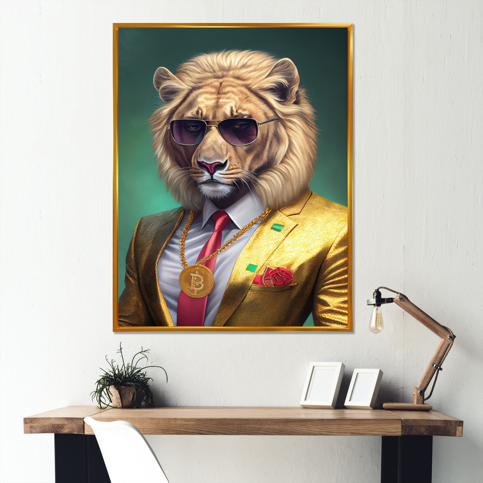 Designart "Photorealistic Of Lion" Funny Animal Framed Canvas Art Print
