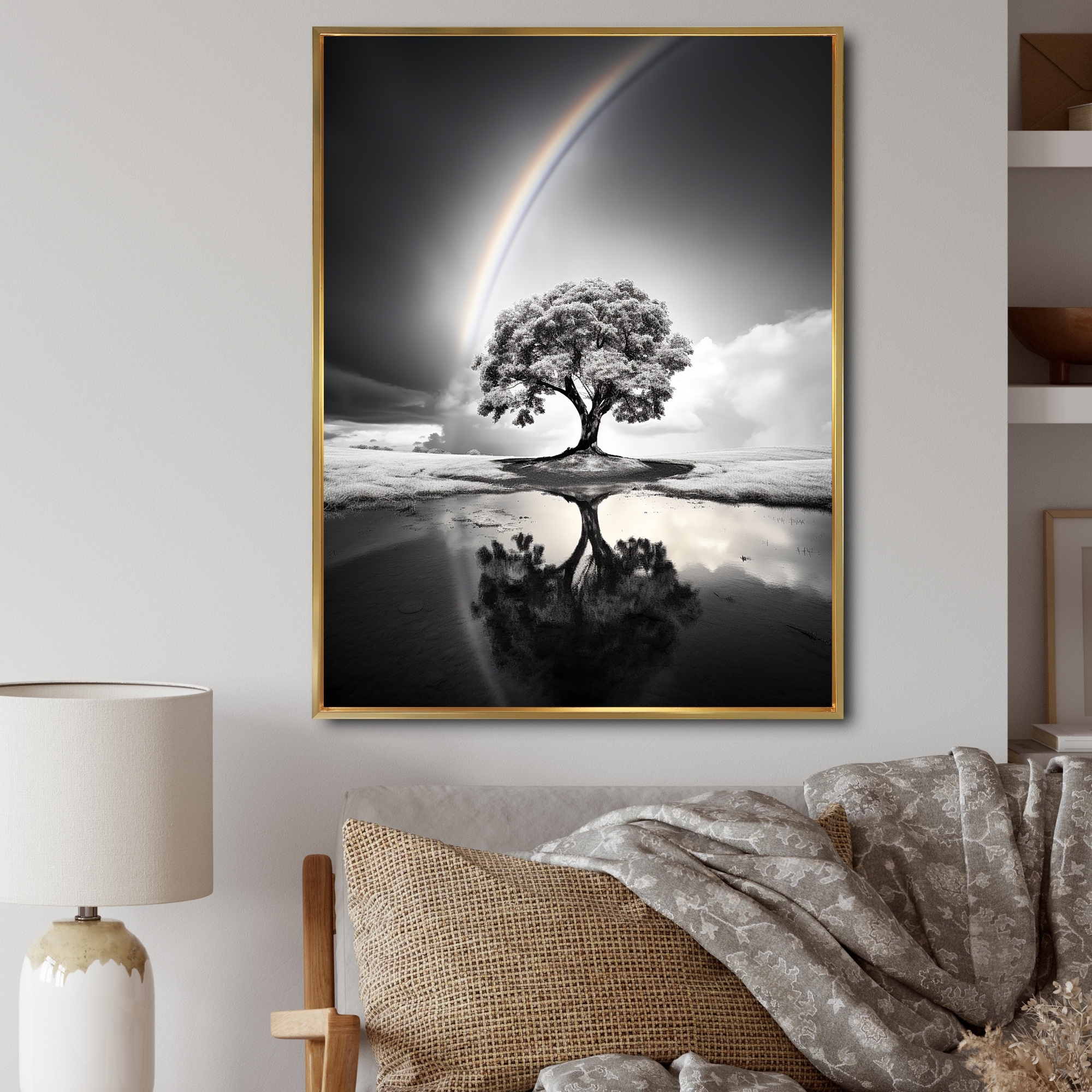 Designart "Rainbow Grayscale Arc Over Tree III" Rainbow Framed Wall Decor