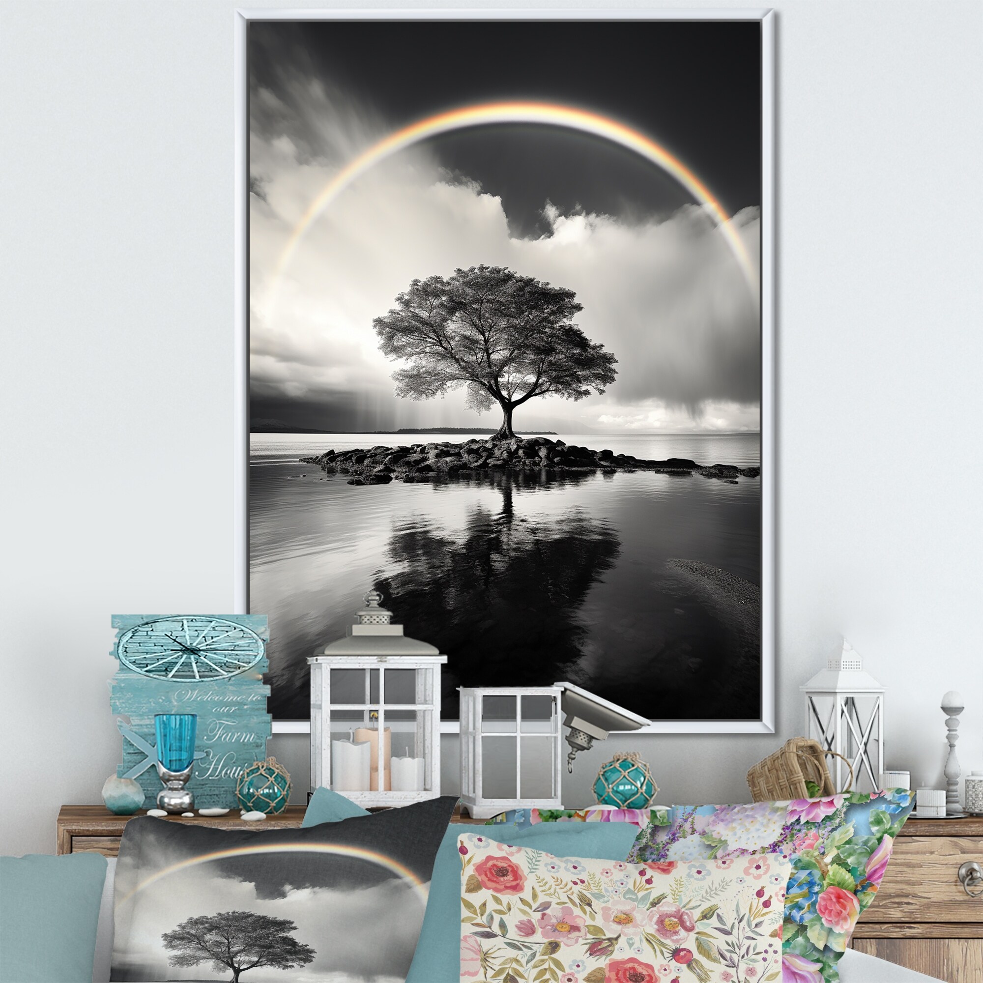 Designart "Rainbow Grayscale Arc Over Tree II" Rainbow Framed Canvas Print