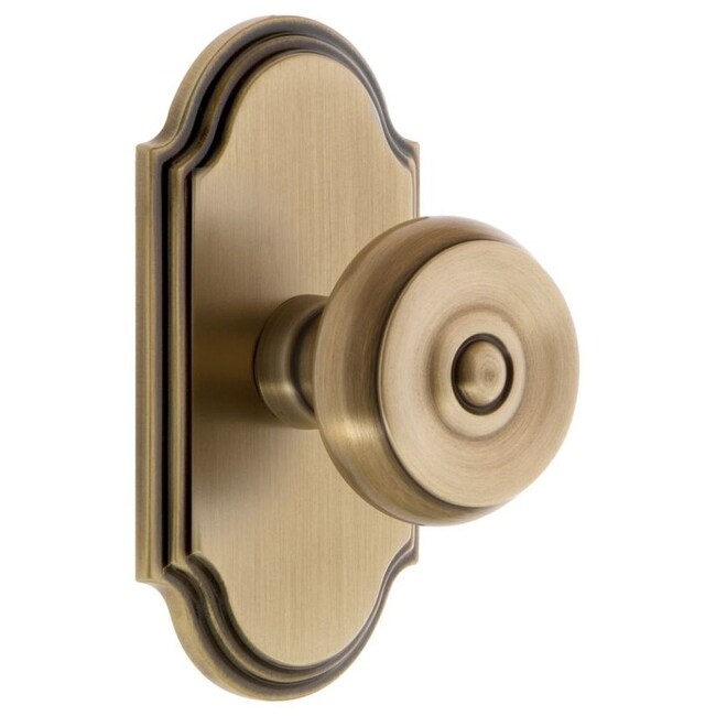 Grandeur Arc Solid Brass Passage Door Knob Set with Bouton Knob and