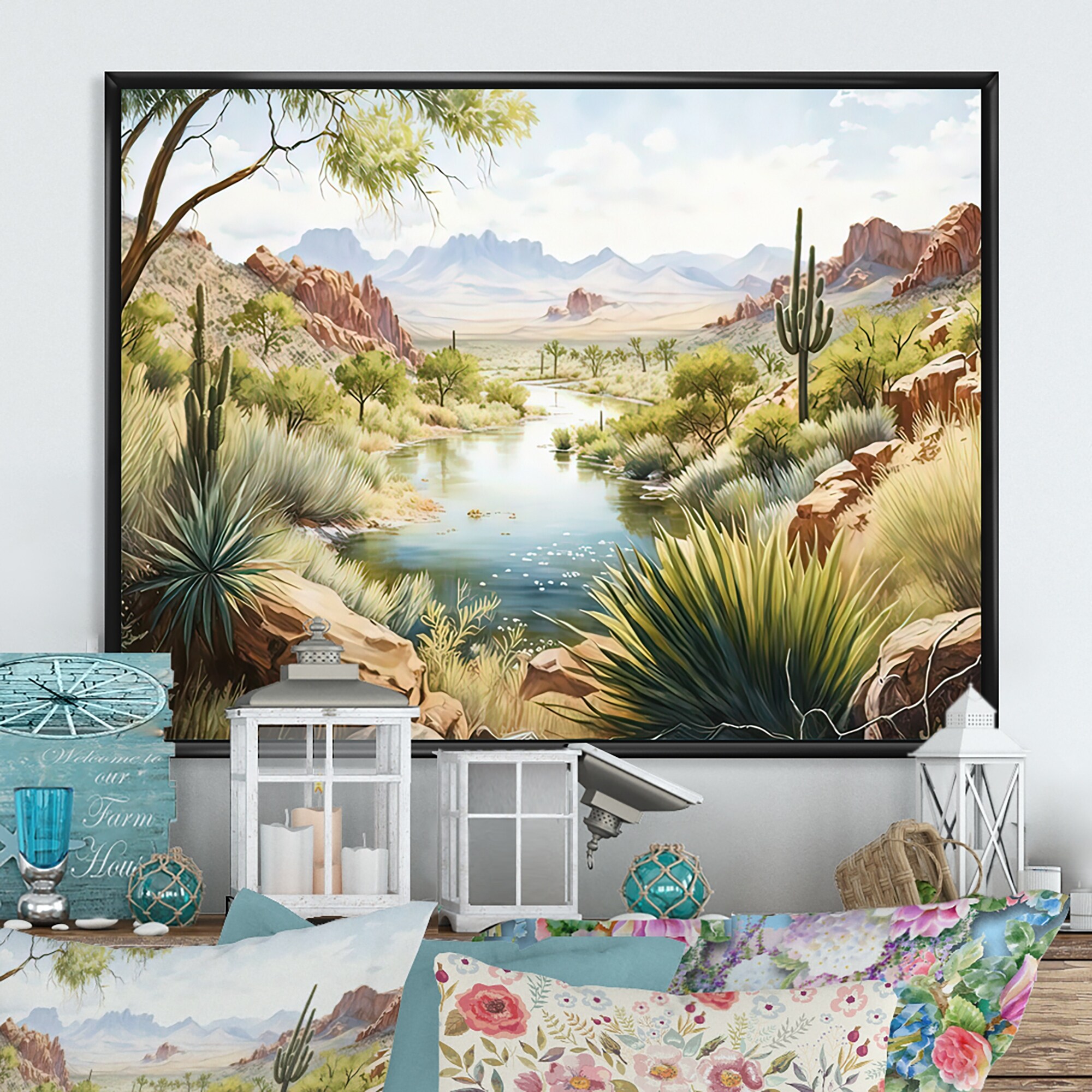 Designart "Arizona Desert Creek Scenery I" Southwestern Framed Canvas Art Print