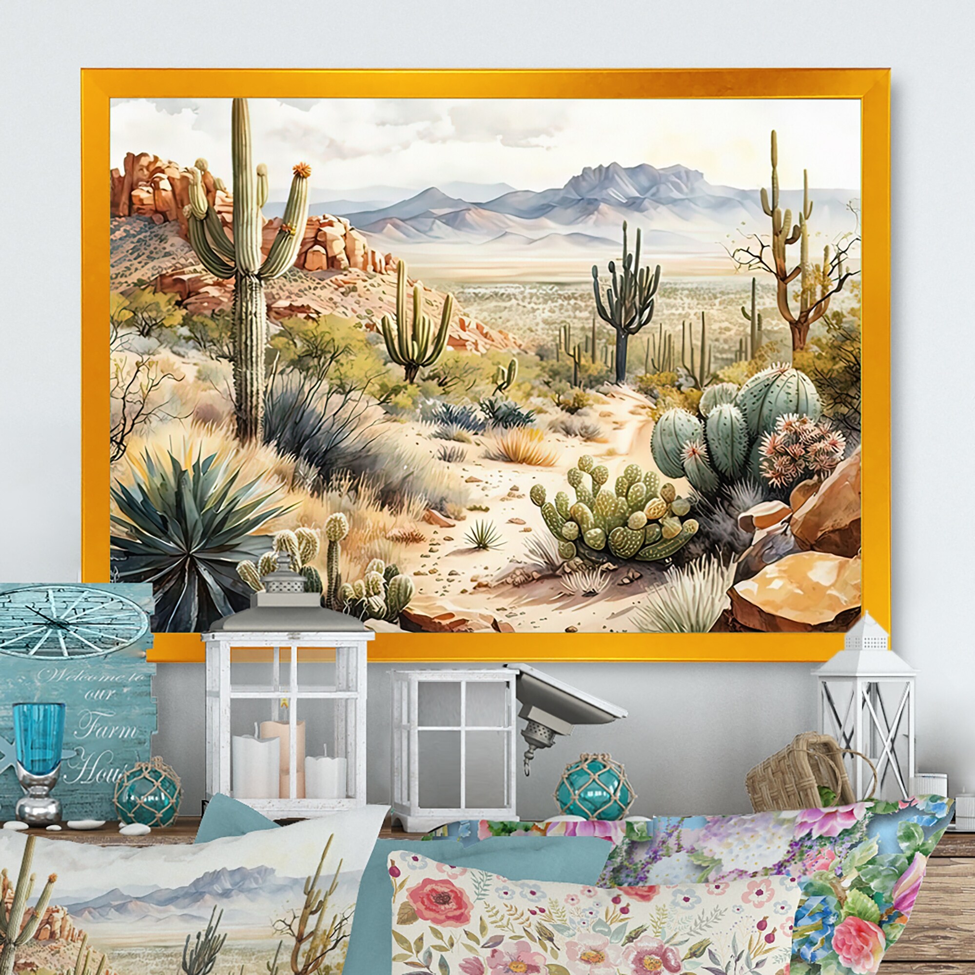 Designart "Arizona Desert Cactus I" Southwestern Framed Art Print