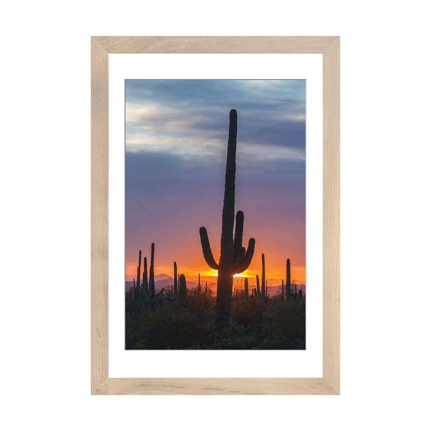 "Arizona sunset over saguaro cacti" Black Float Frame Canvas Art