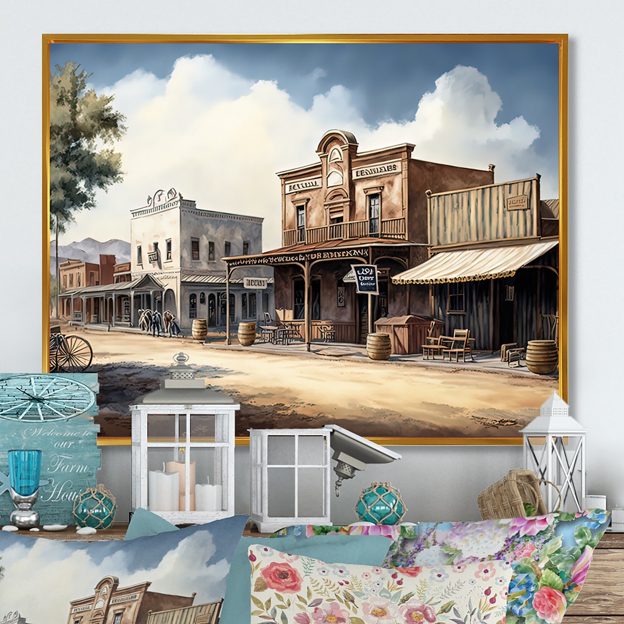 Designart "Arizona Wild West Town II" Southwestern Framed Canvas Art Print
