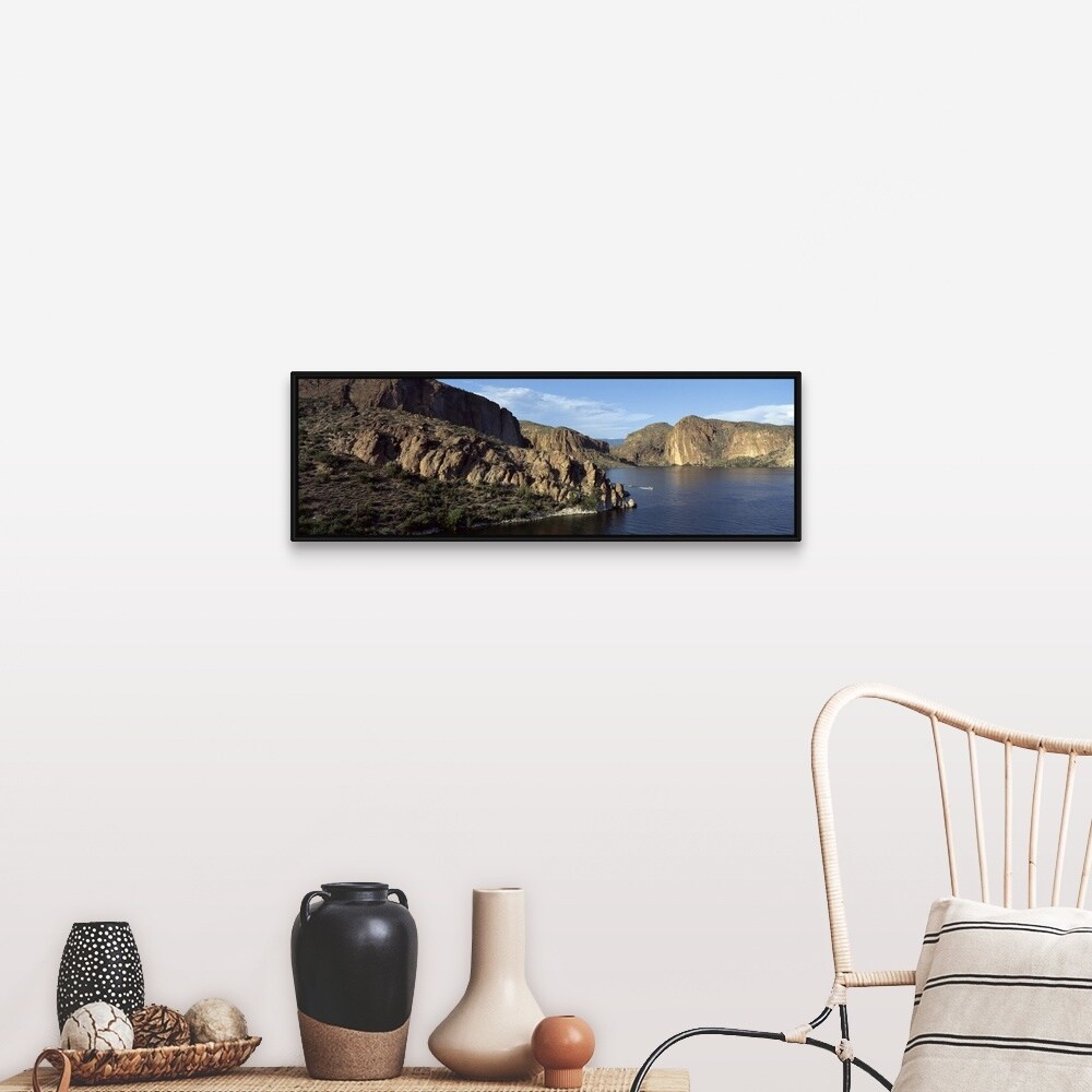 "Mountain at the lakeside, Canyon Lake, Arizona" Black Float Frame Canvas Art
