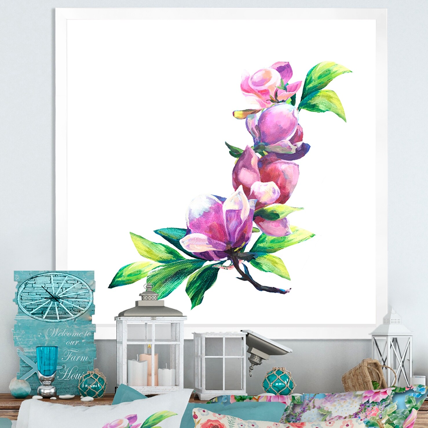 Designart "Green And Pink Flower Arrangement IV" Traditional Framed Wall Art