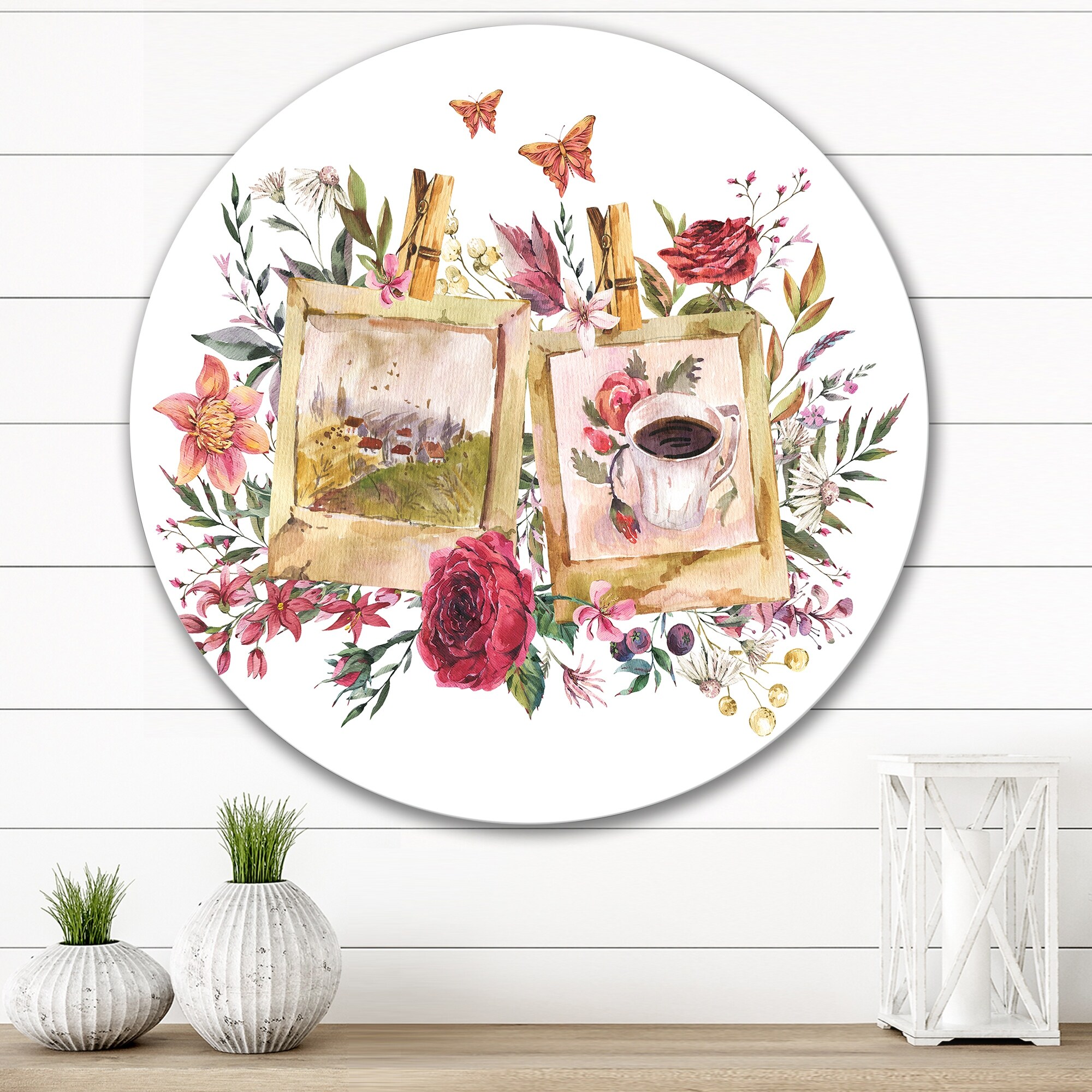 Designart 'Vintage Floral Arrangement With Old Photo' Traditional Metal Circle Wall Art