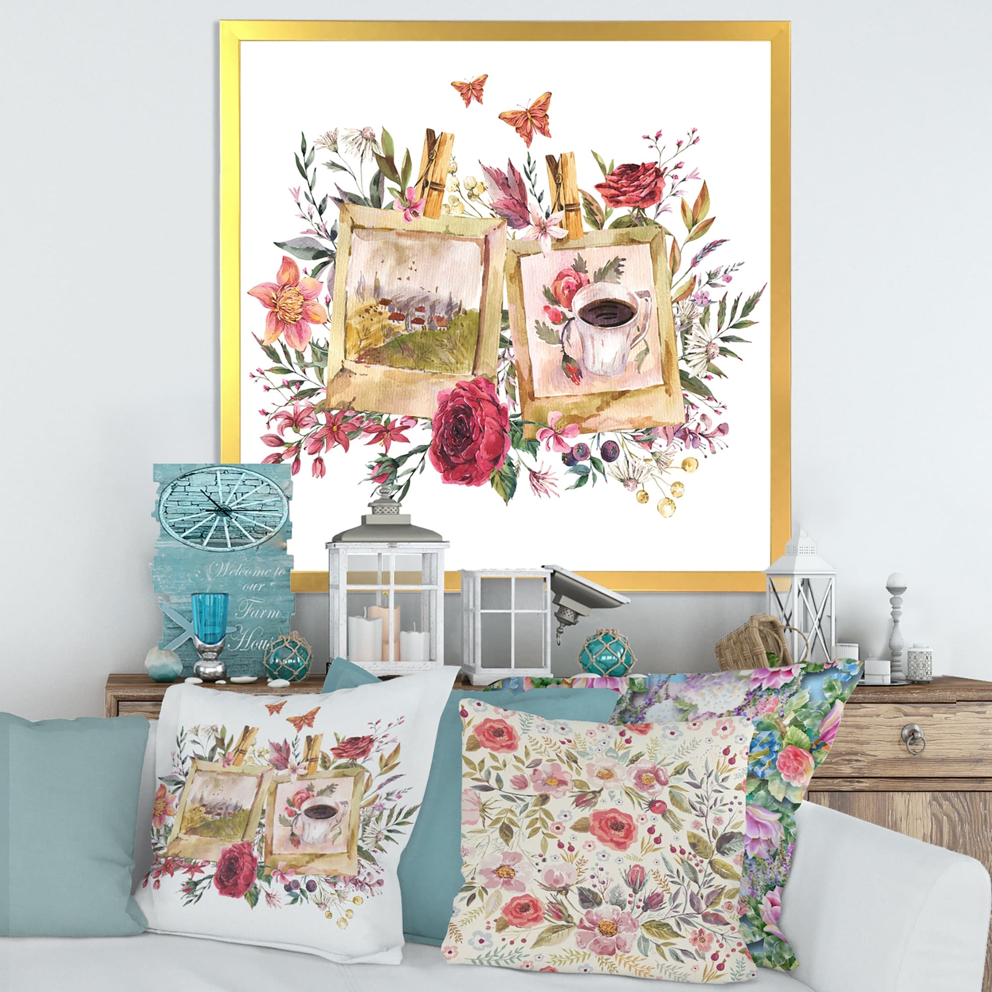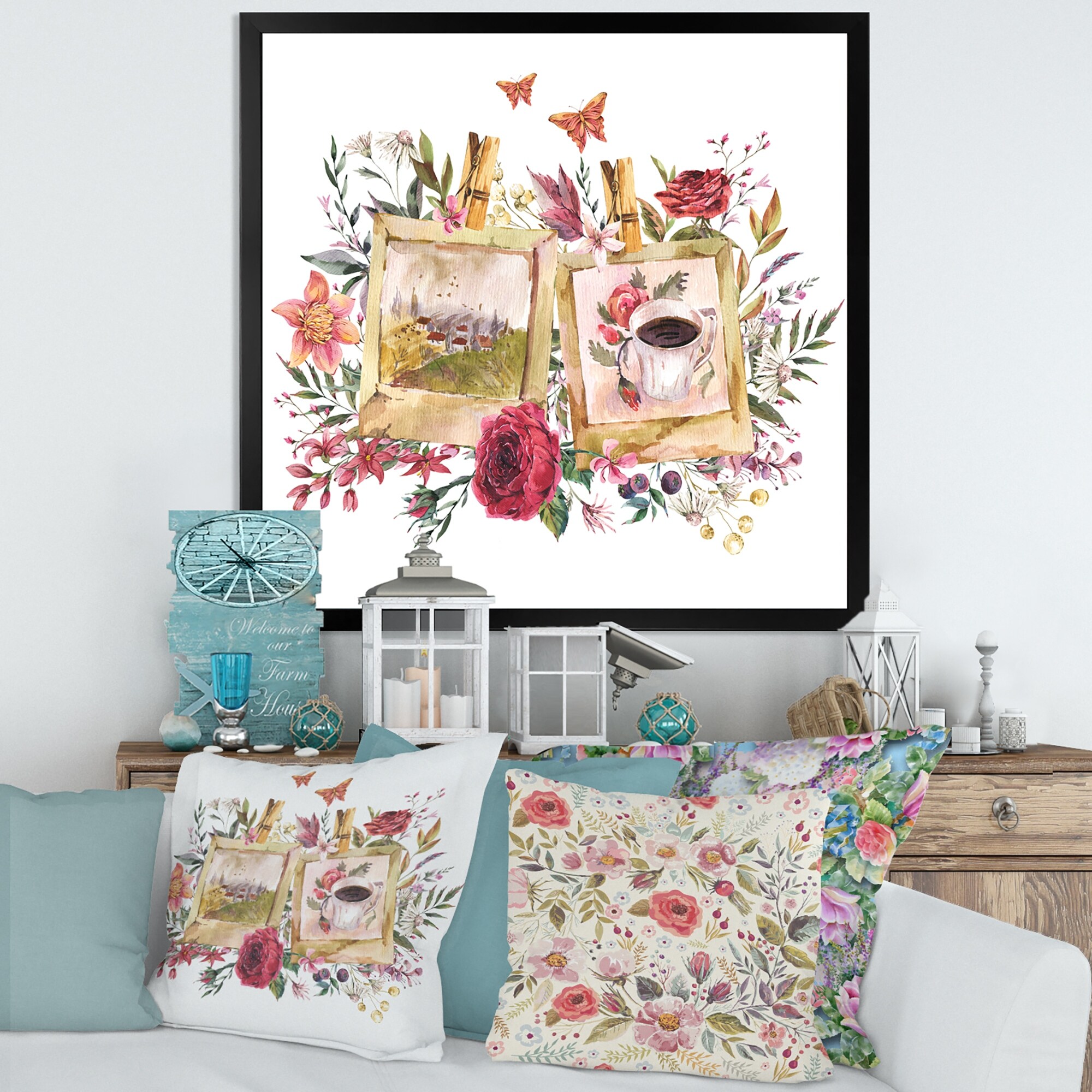 Designart "Vintage Floral Arrangement With Old Photo" Traditional Framed Art Print