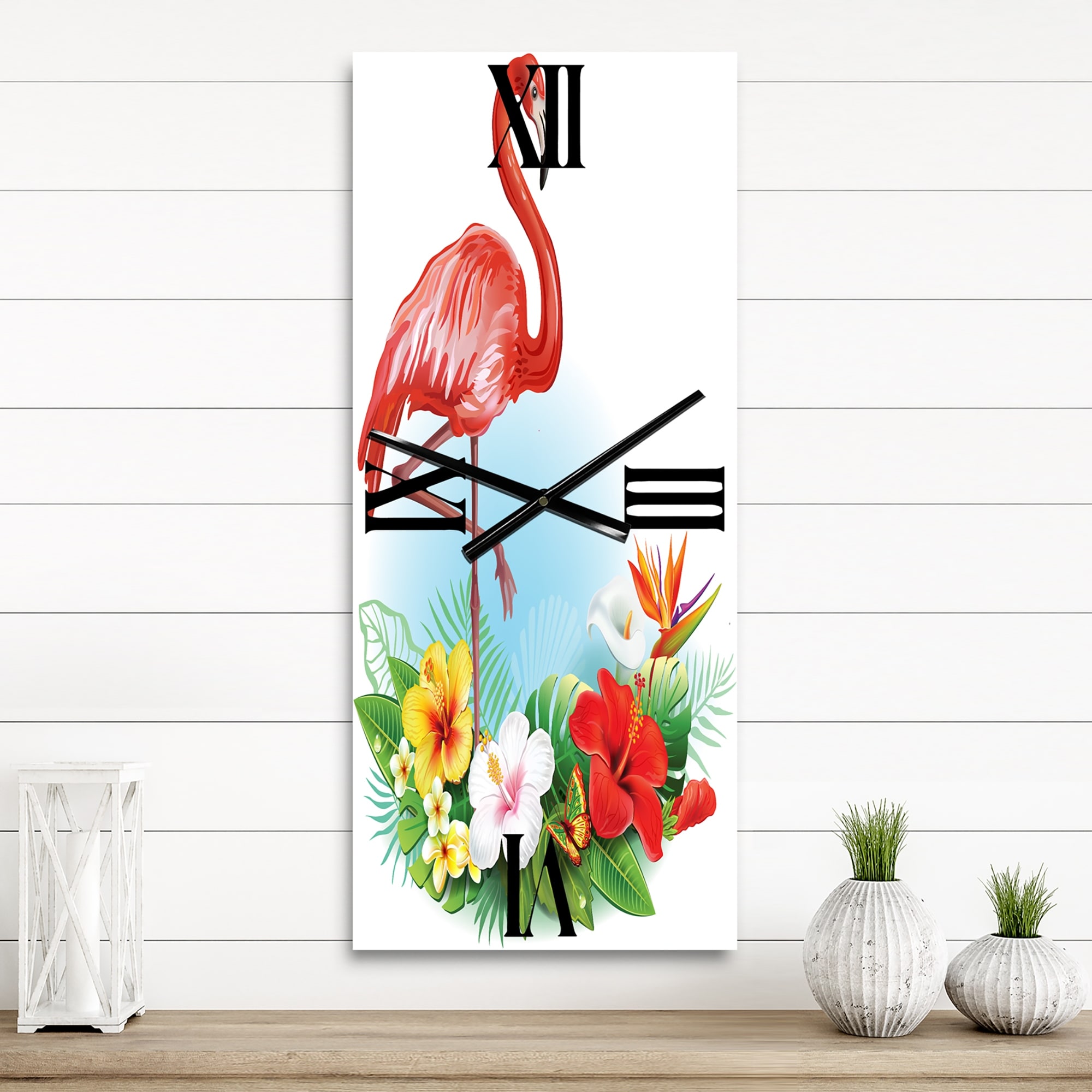 Designart 'Arrangement with Tropical Flowers and Flamingo' Traditional Metal Wall Clock