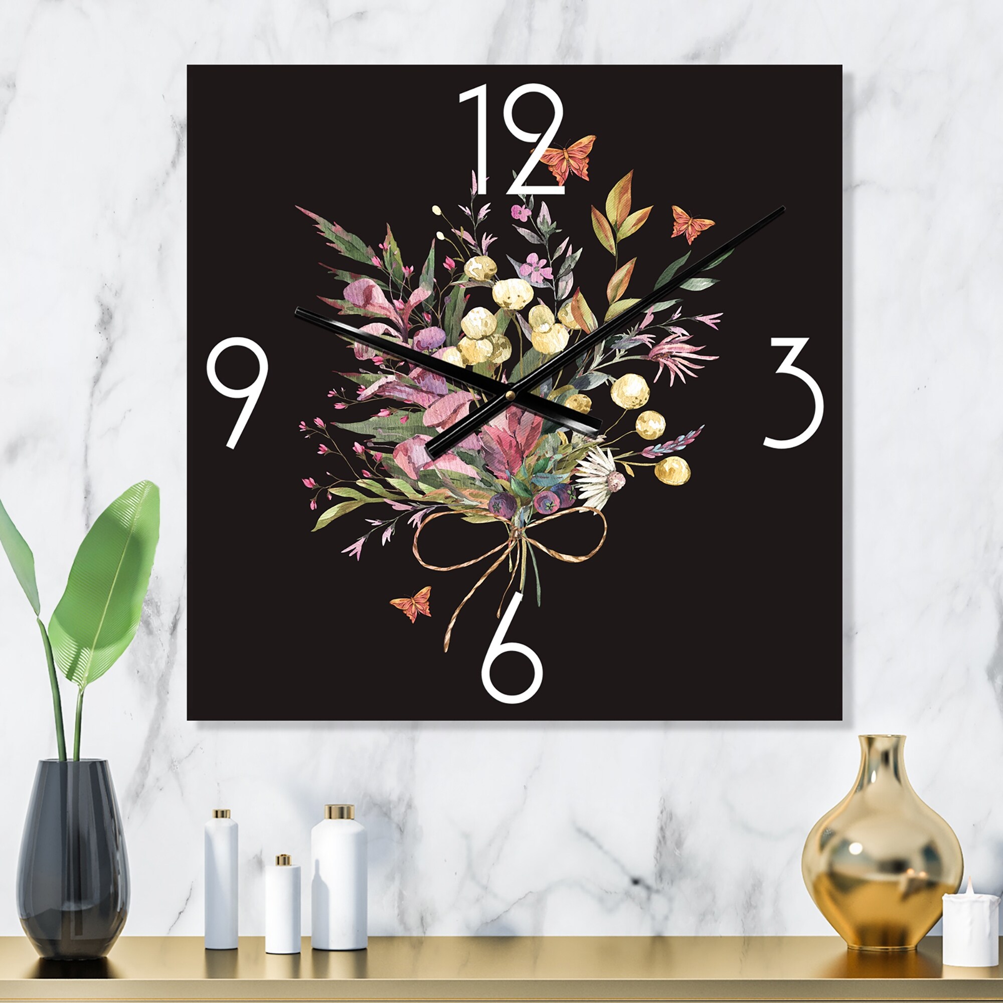 Designart 'Vintage Floral Summer Wildflowers Arrangement' Traditional Wall Clock Decor