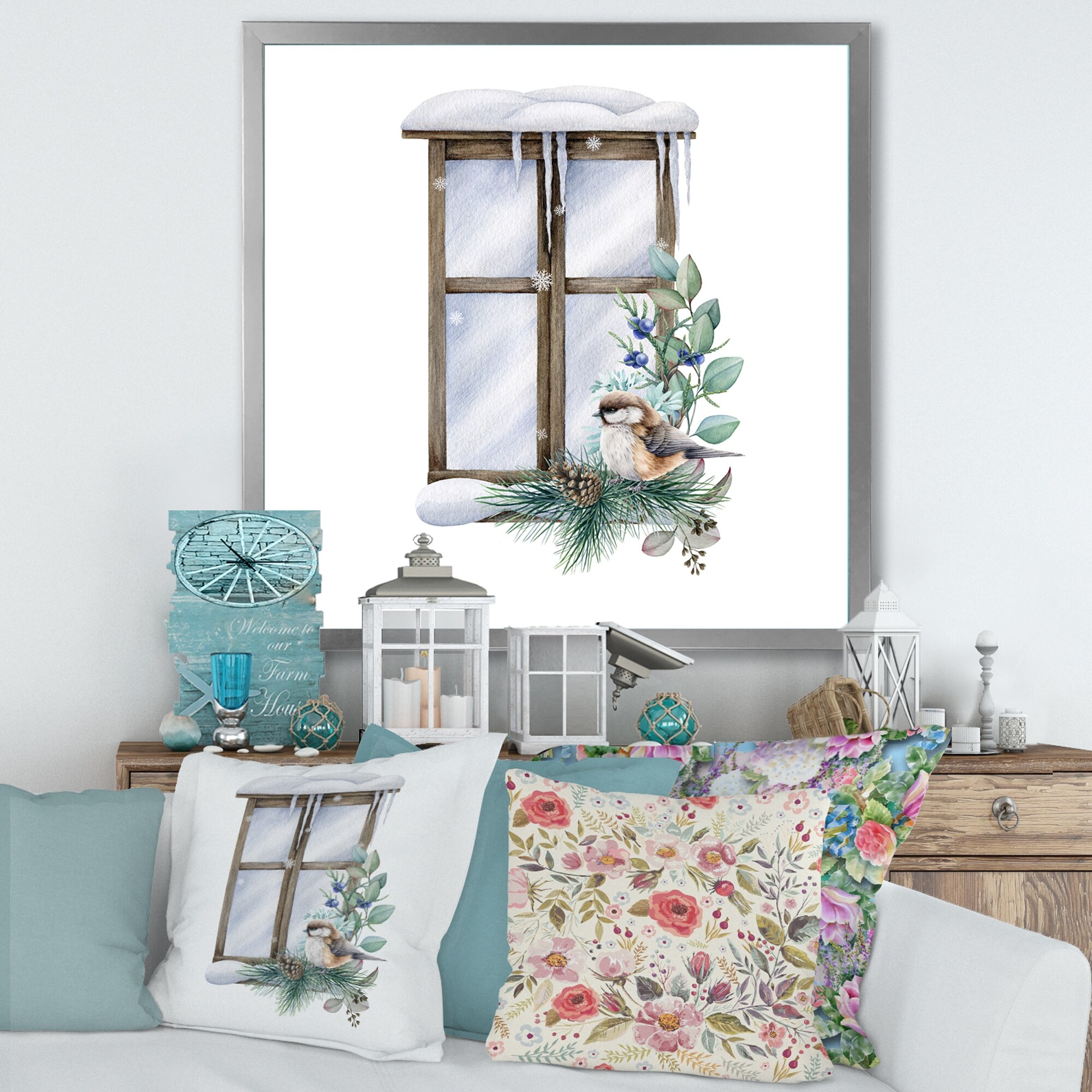 Designart "Winter Arrangement With Bird" Traditional Framed Art Print