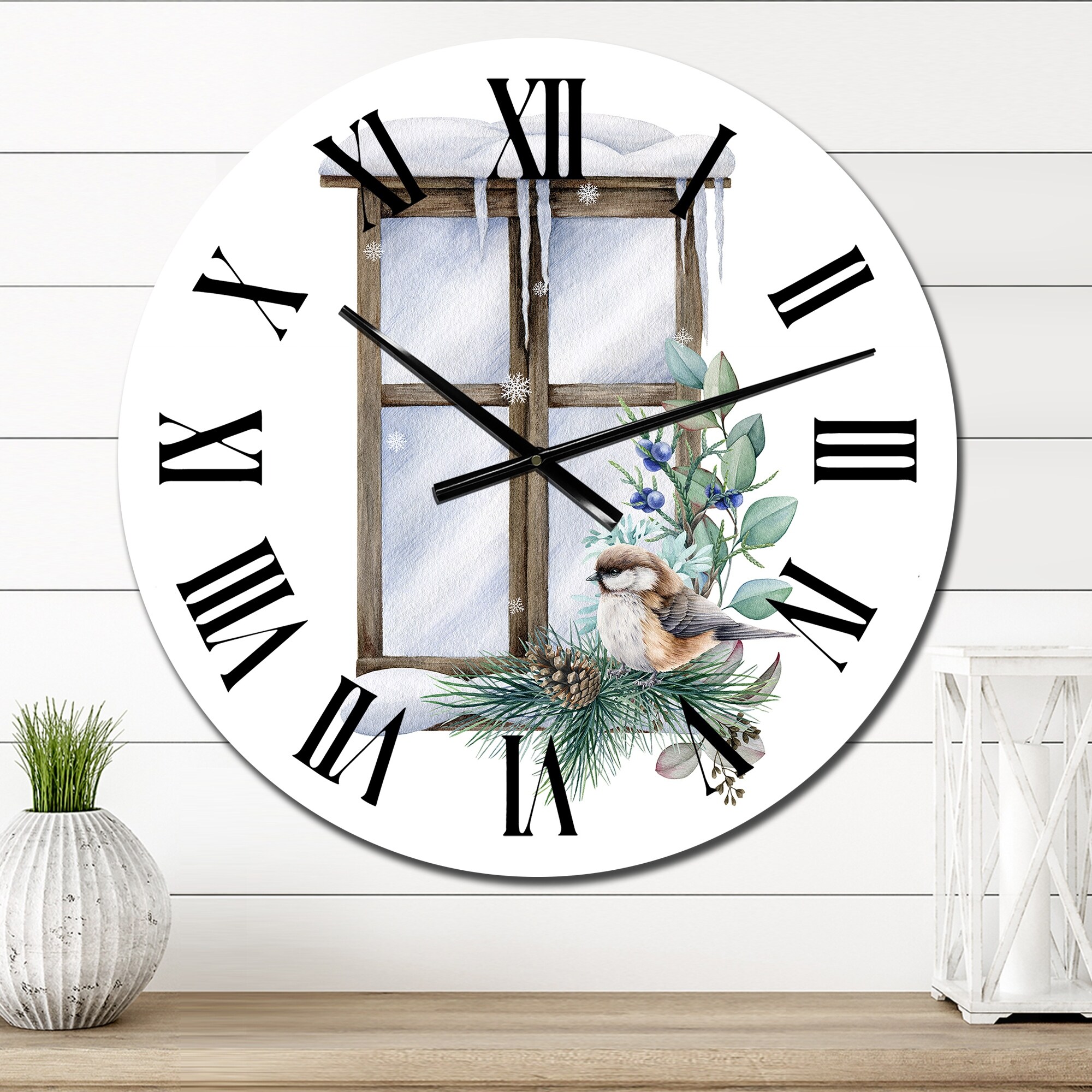 Designart 'Winter Arrangement With Bird' Traditional wall clock