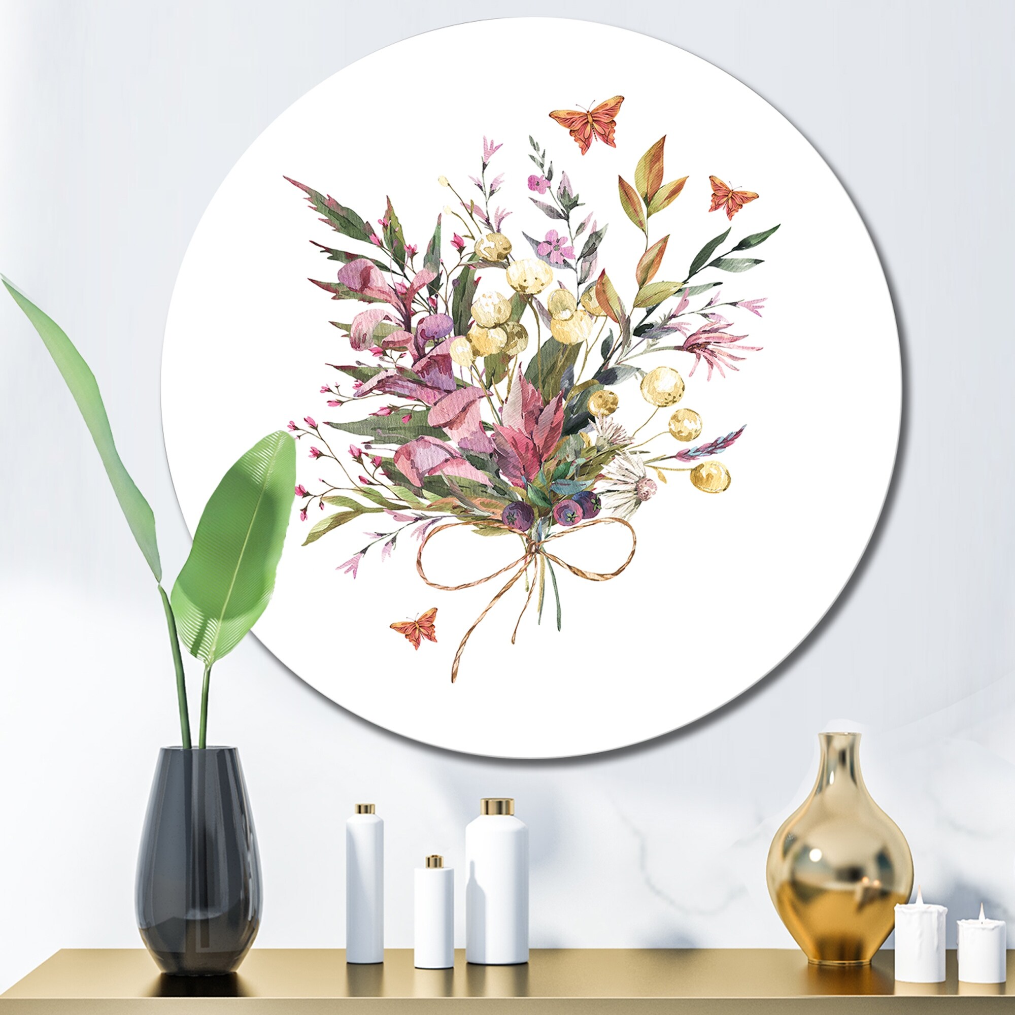 Designart 'Vintage Floral Summer Wildflowers Arrangement' Traditional Metal Circle Wall Art