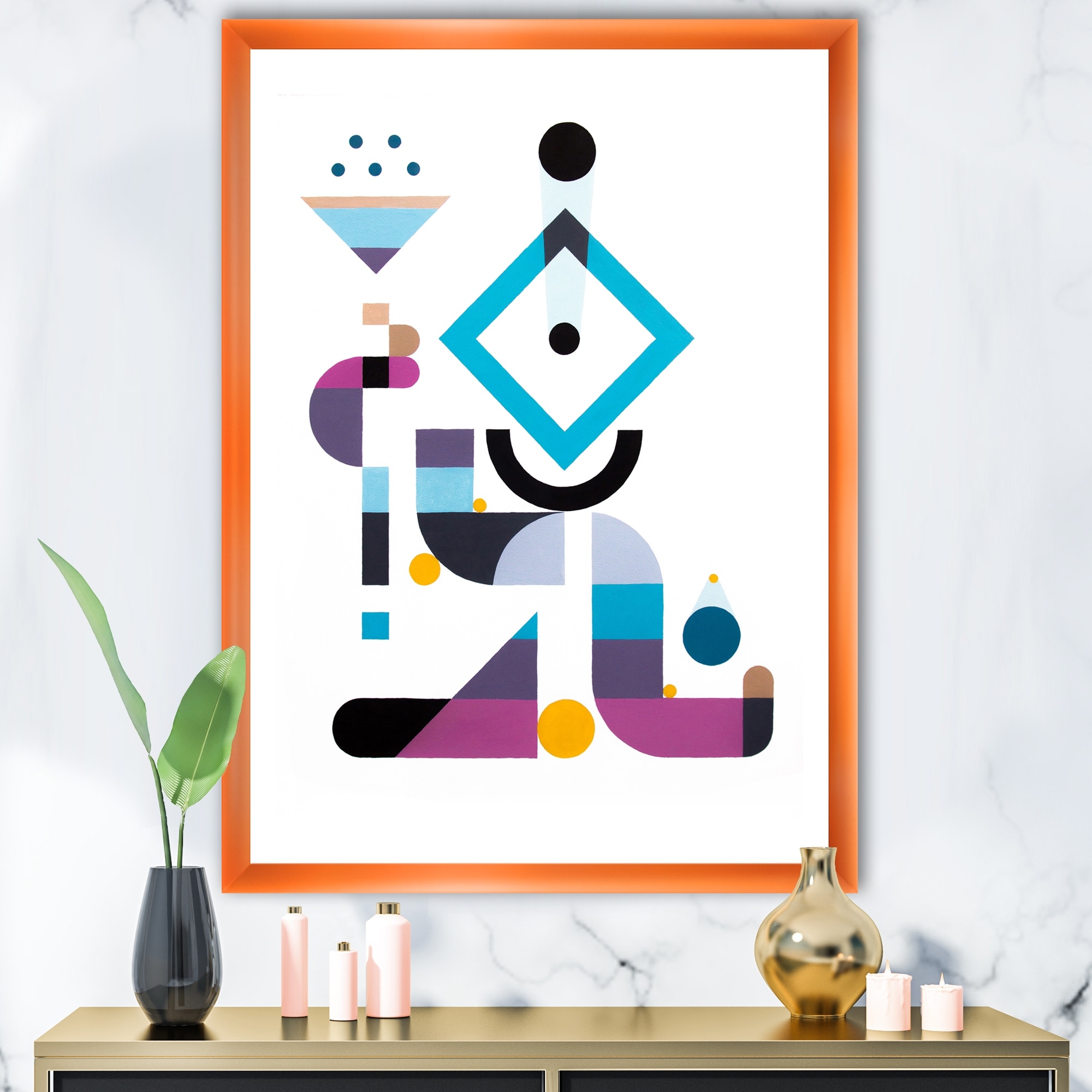 Designart "Blue Diamond Arrangement" Mid-Century Modern Framed Art Print