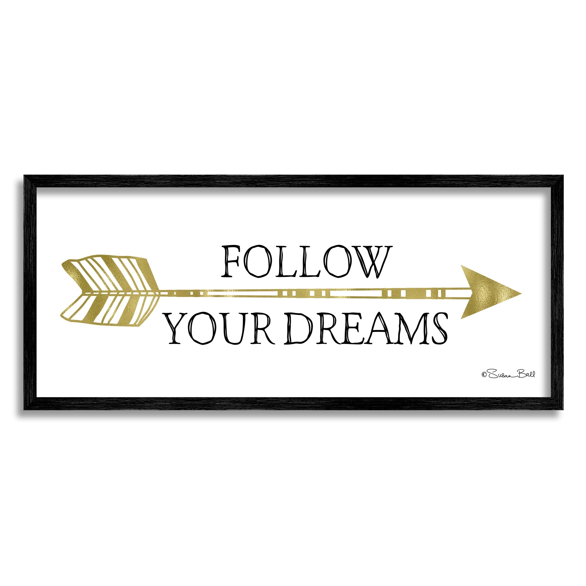 Stupell Follow Your Dreams Patterned Golden Arrow Motivational Sign Framed Wall Art, Design by Susan Ball - White