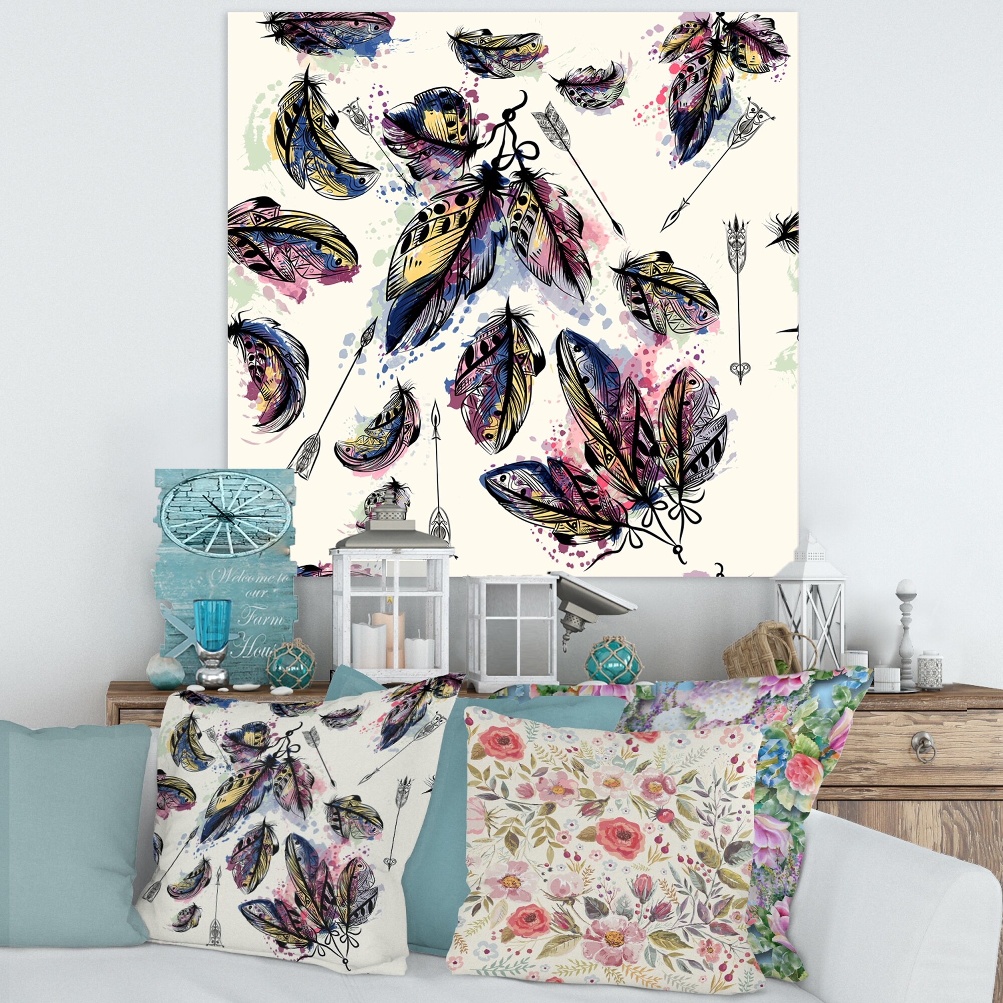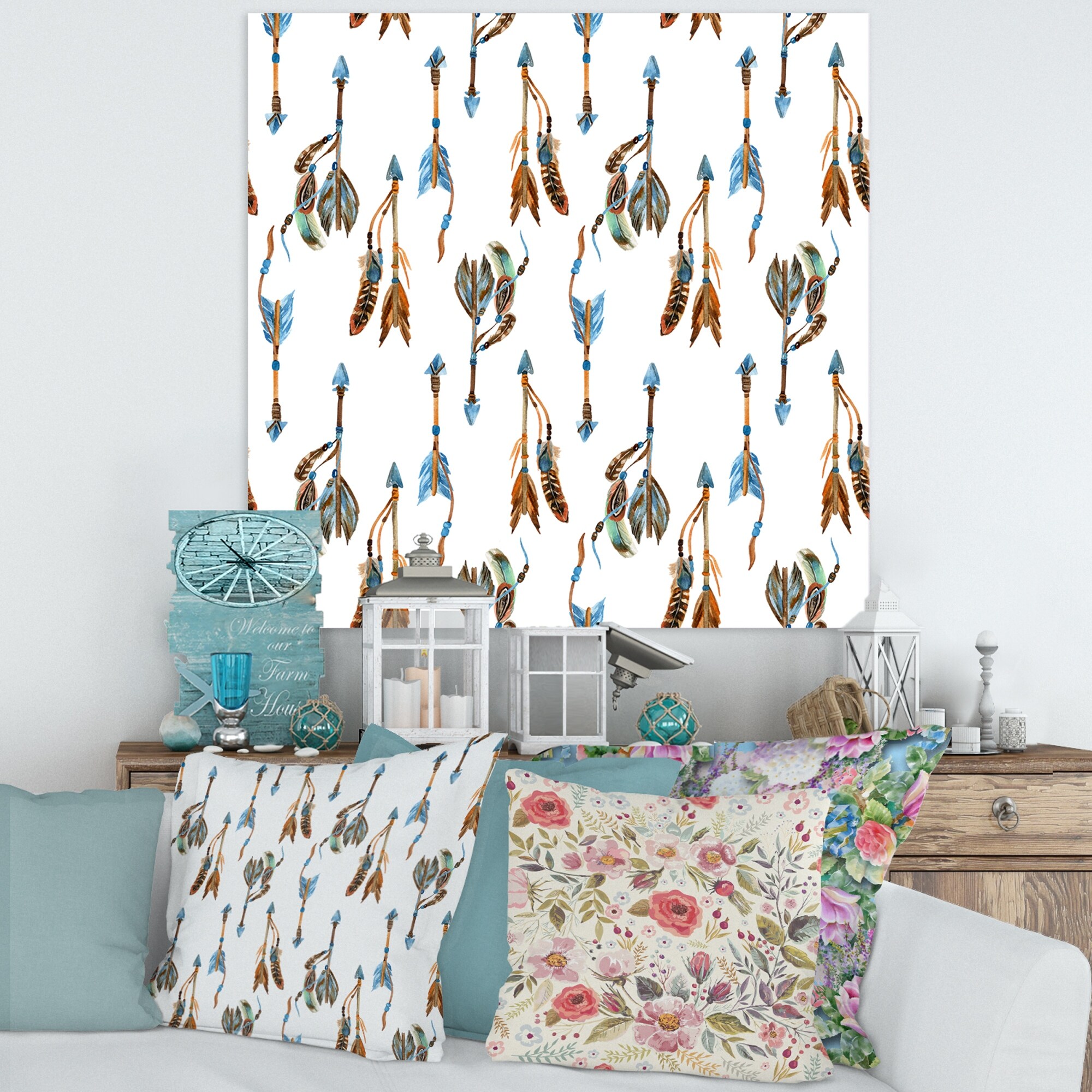 Designart "Tribal Boho Feathers And Arrows" Bohemian Canvas Wall Art Print