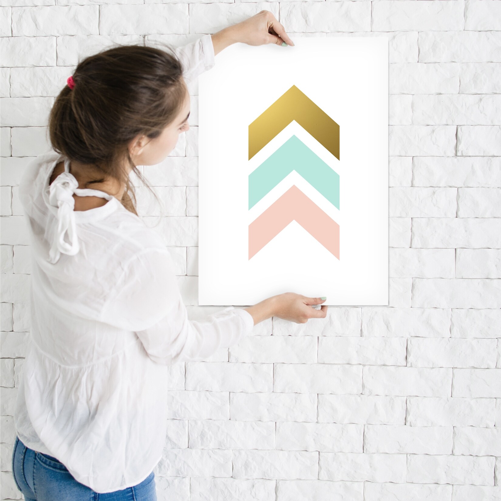 Americanflat - Chevron Arrows Mint Blush Gold by Wall + Wonder - 16"x20" Poster Art Print