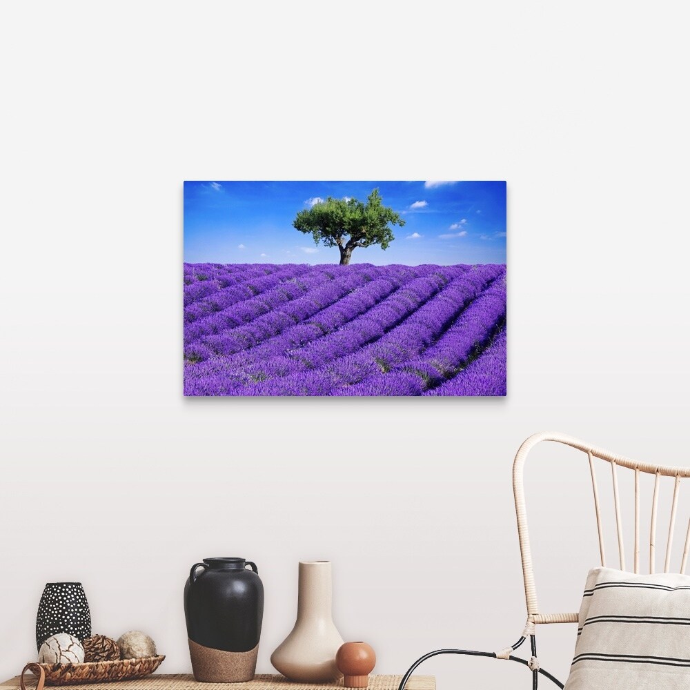 "Lavender field in summer with one tree. Haute Provence, France" Canvas Wall Art