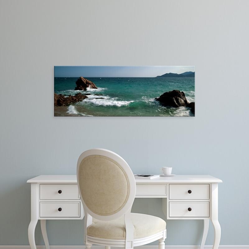 Easy Art Prints Panoramic Images's 'Waves Crashing on Rocks, French Riviera, France' Premium Canvas Art