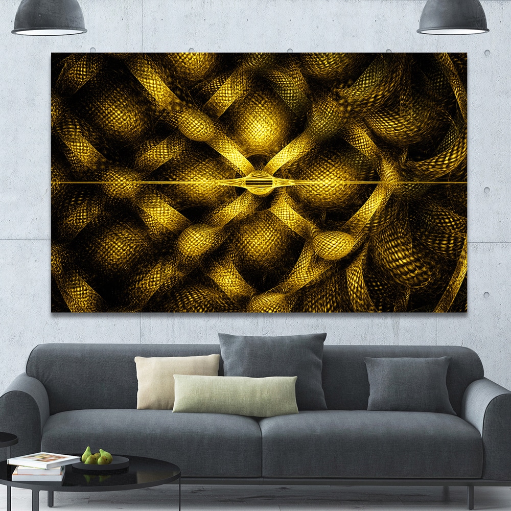 Designart "Golden Fractal Watercolor Pattern'Large Abstract Canvas Art Print
