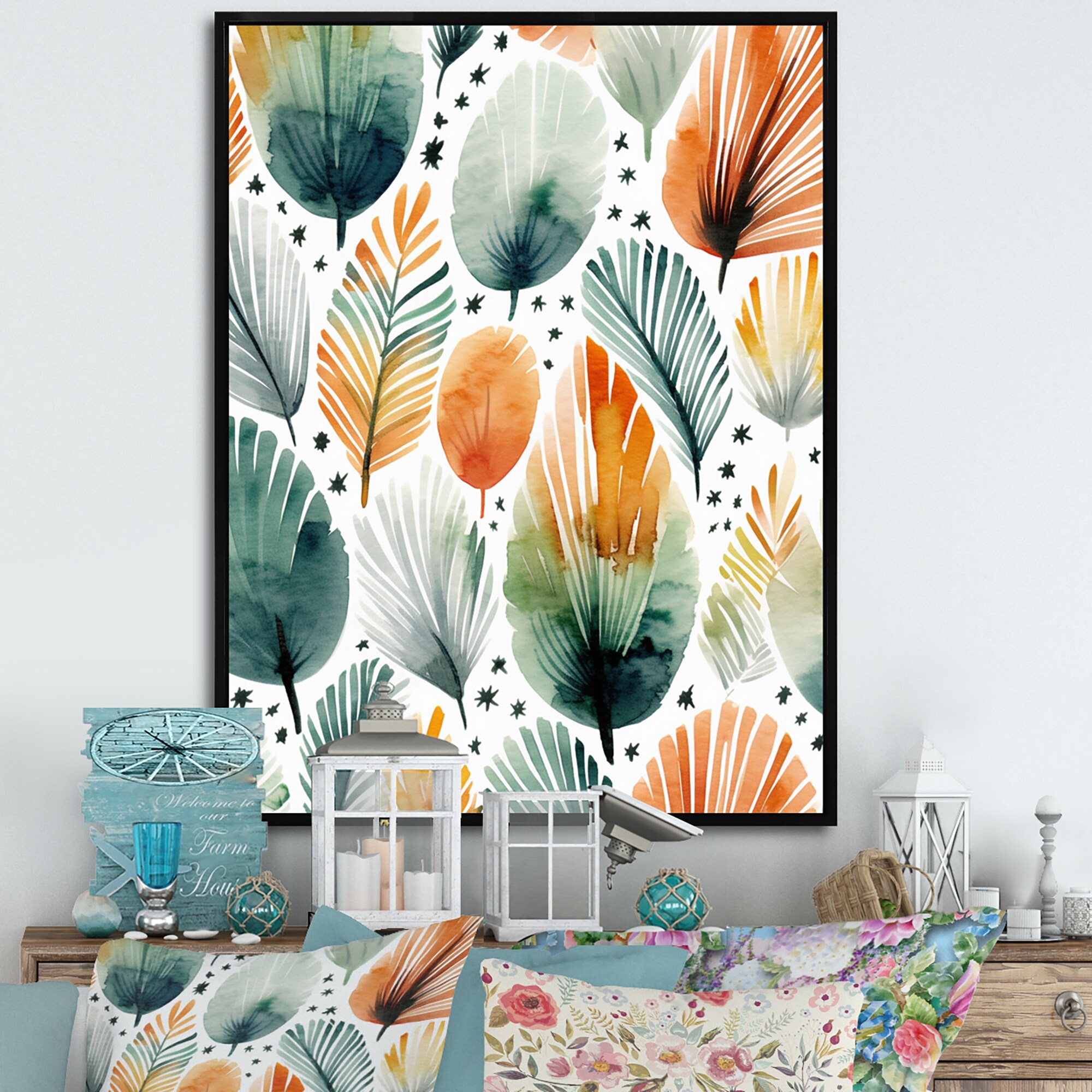 Designart "Multicolored Ferns Collage III" Ferns Wall Art Living Room