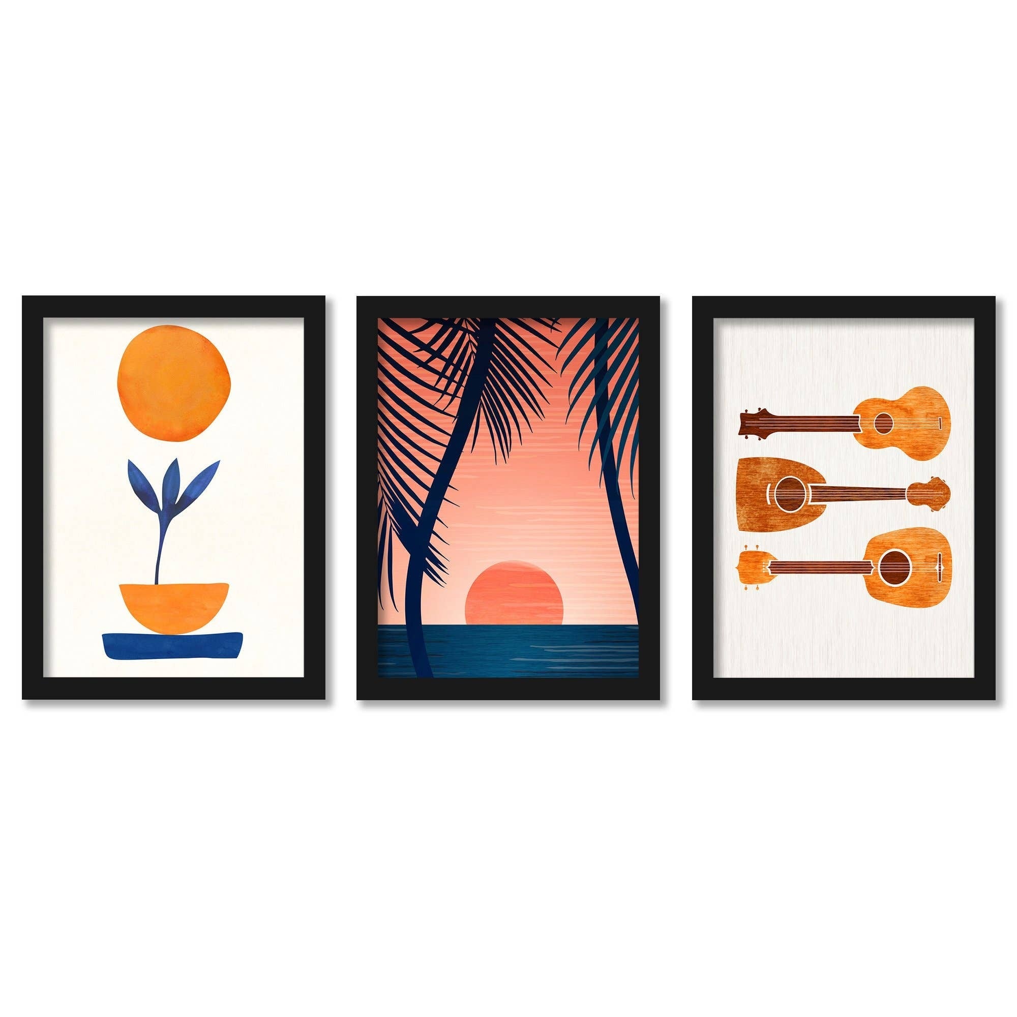 Peace And Palms Modern Tropical Modern Tropical - 3 Piece Framed Gallery Art Set