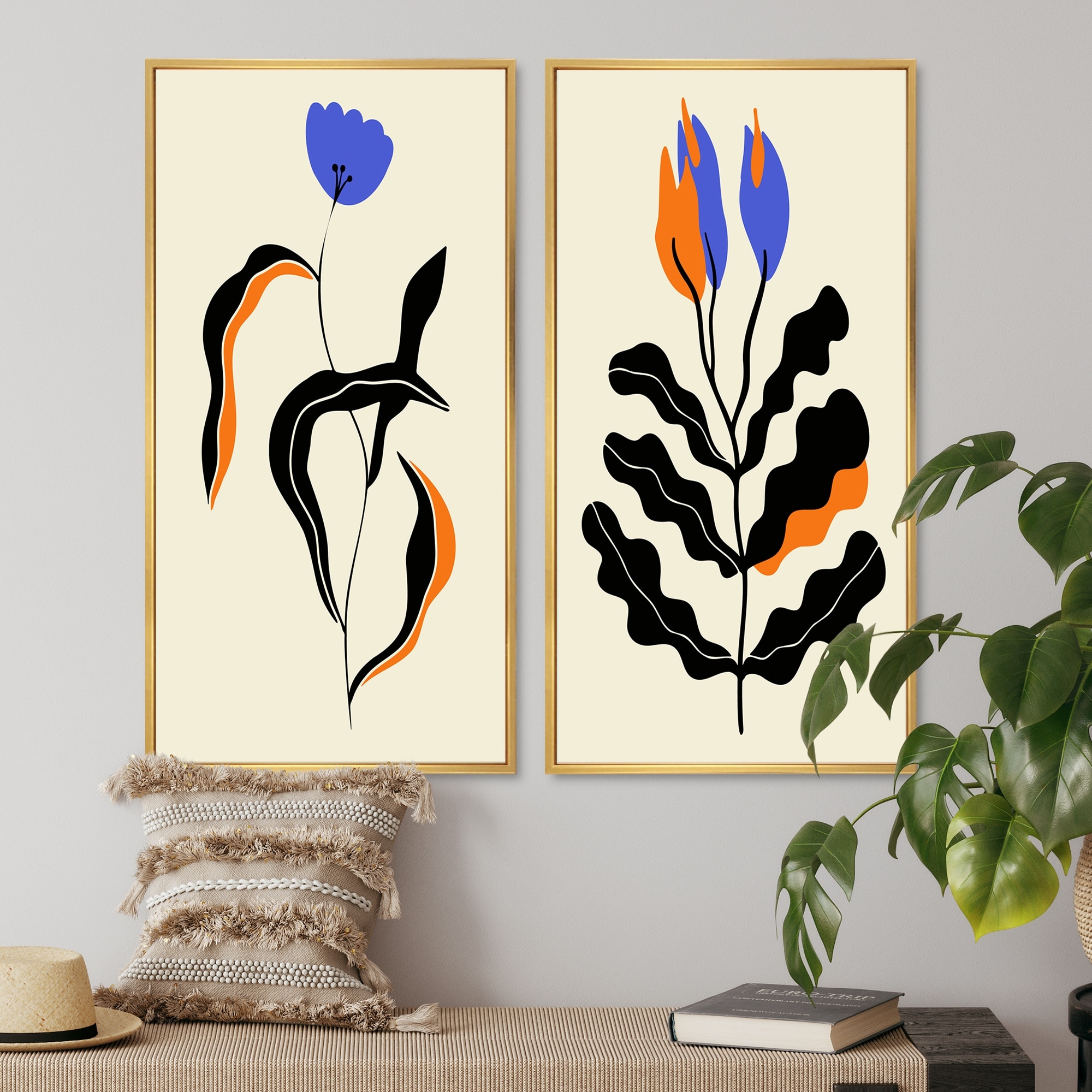 Designart "Rero Abstract Floral Illustrations II" Floral Framed Art Set of 2 Pieces
