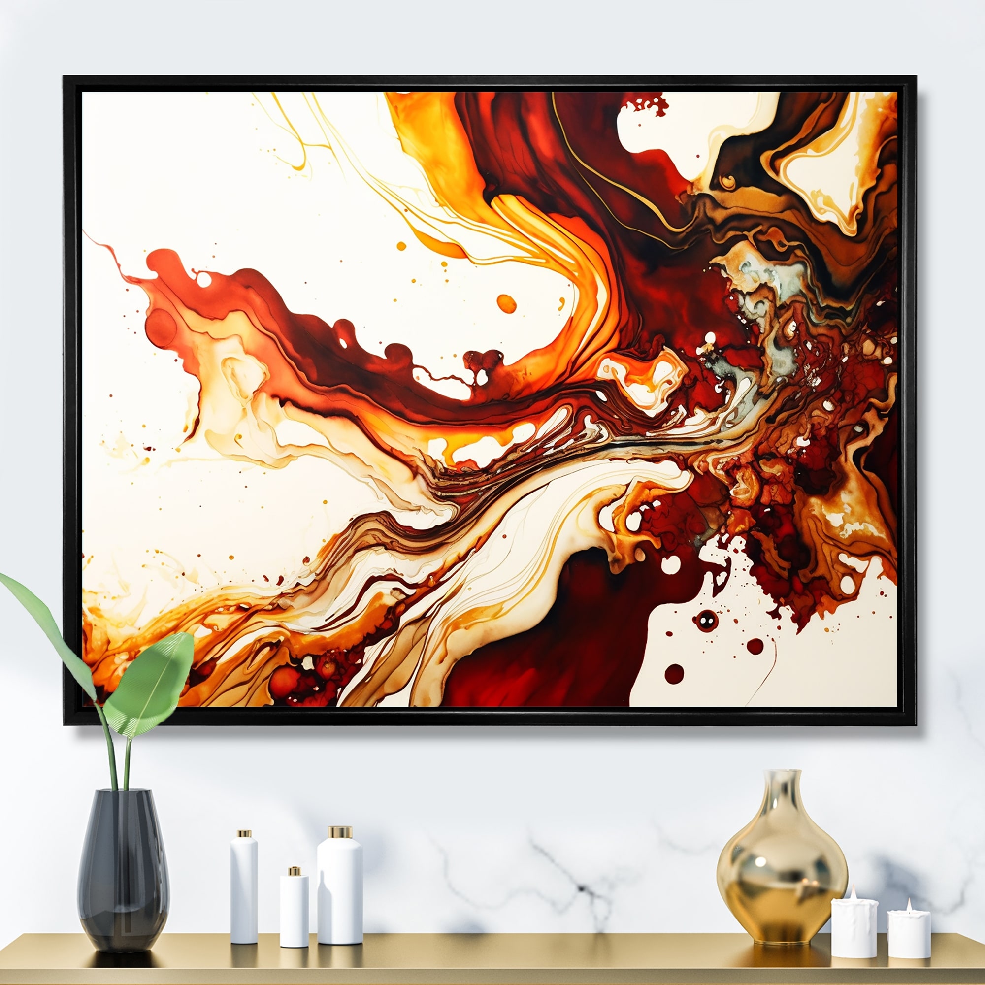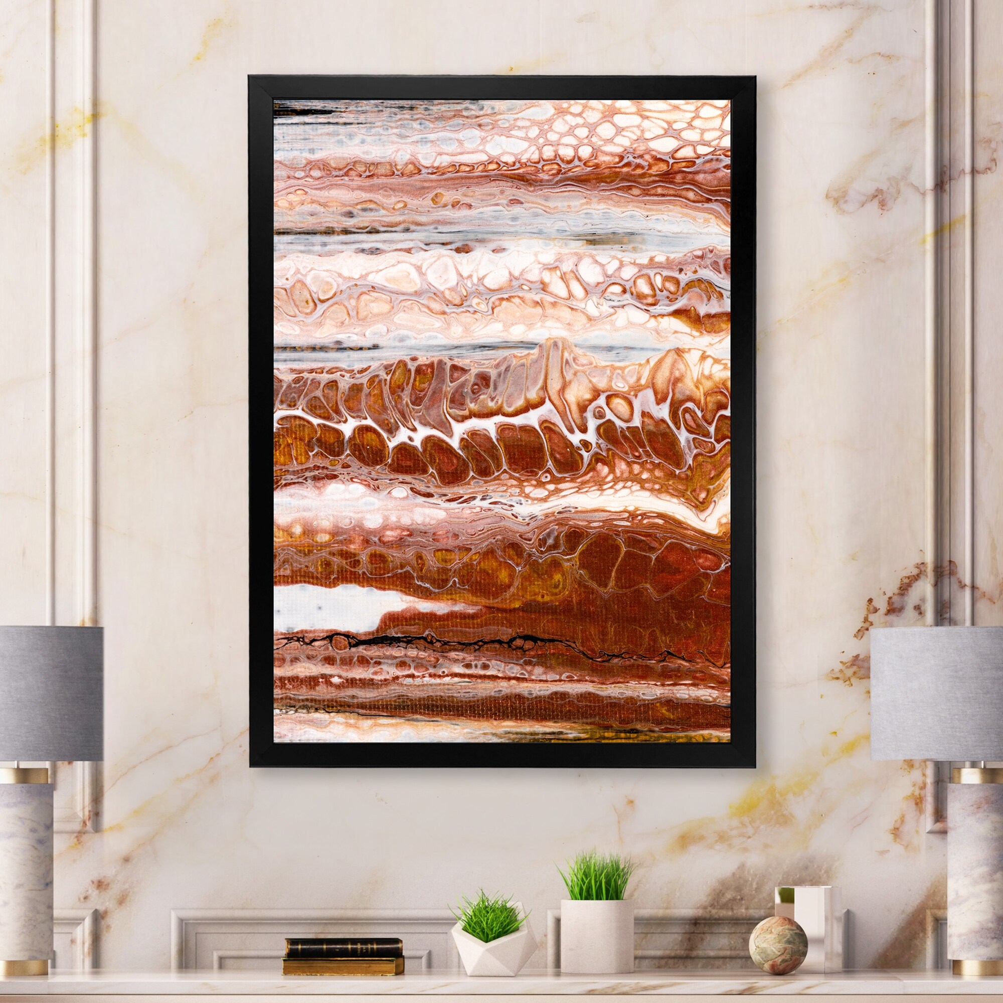 Designart "Organic Shapes in Brown And Black Marble Art" Abstract Framed artwork