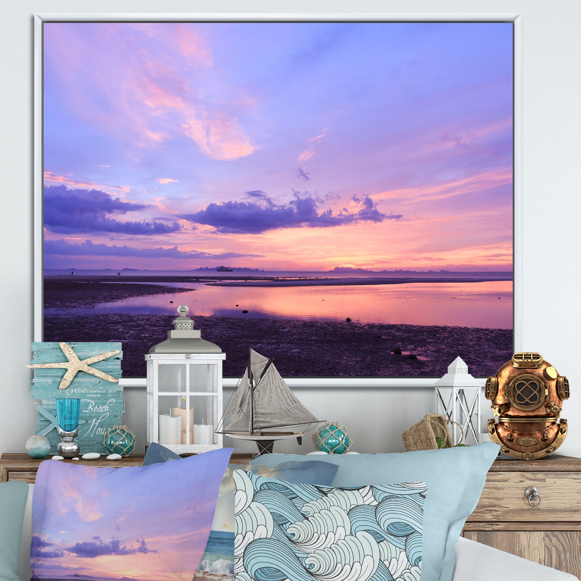 Designart "Beach Sunrise With Dramatic Sky XI" Nautical & Coastal Framed Canvas Wall Art