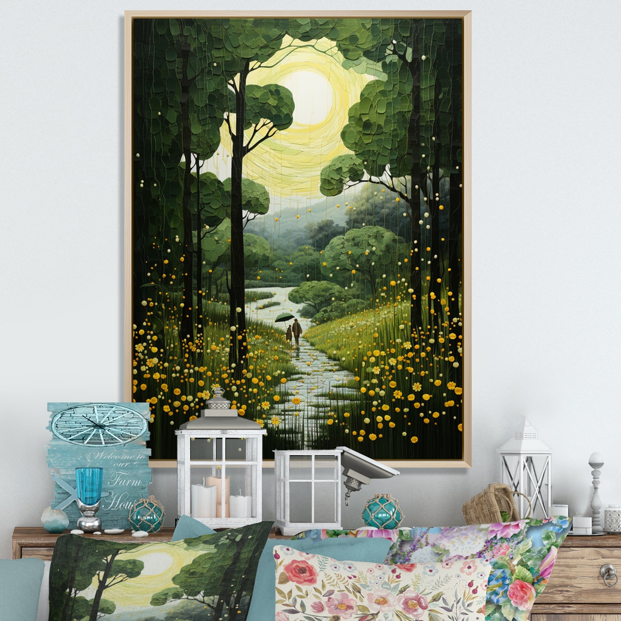 Designart "Forest Whispering Woods Pastoral II" Forest Framed Wall Art Living Room
