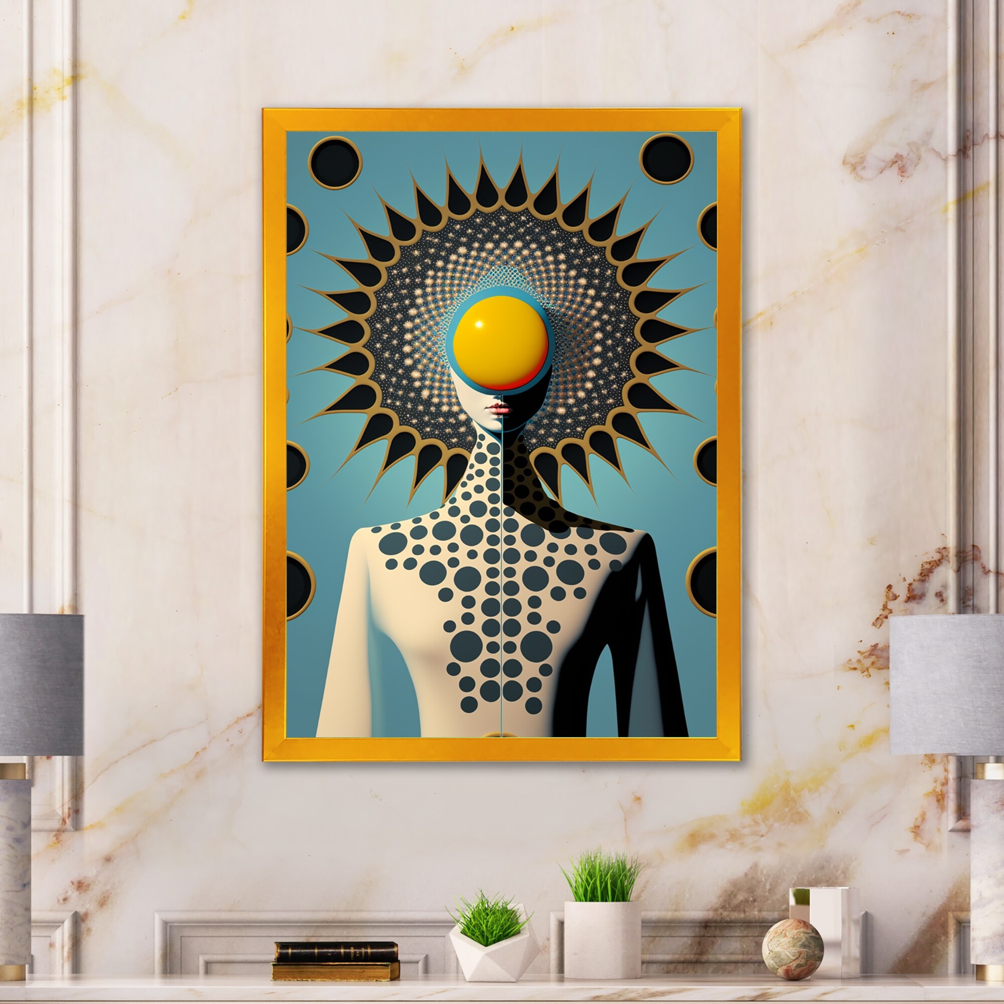 Designart "Golden Consciousness Woman II" Modern Abstract Framed Art Print