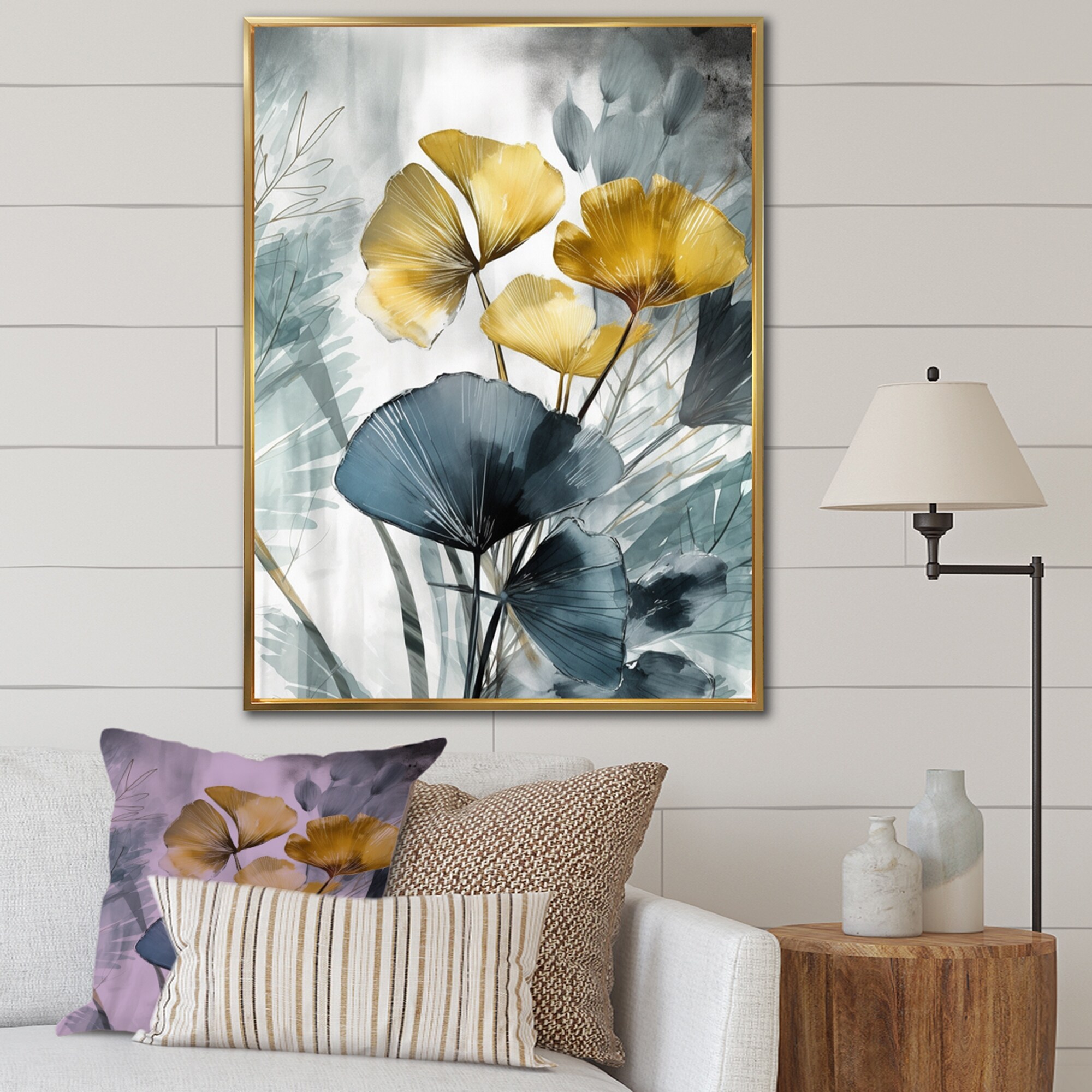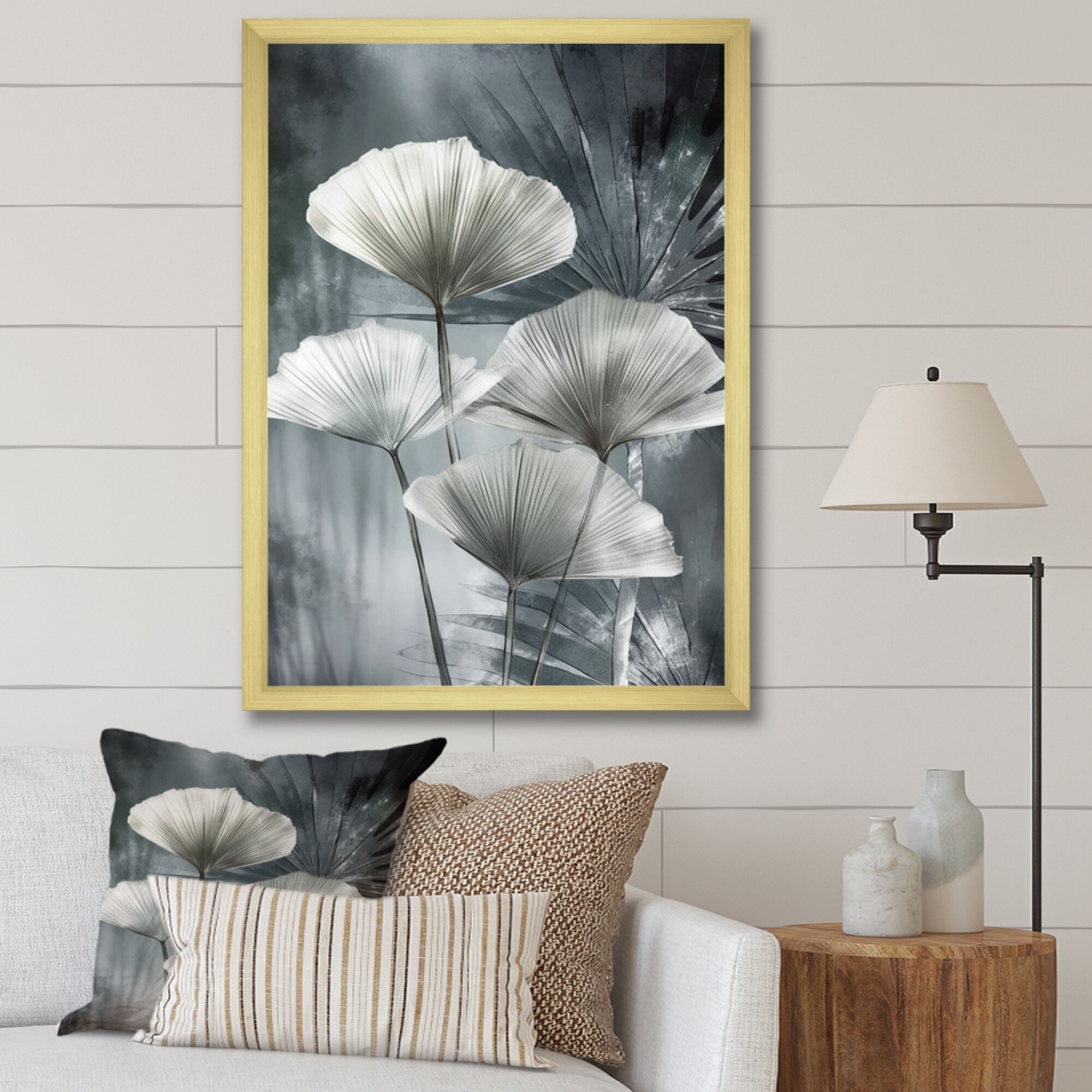 Designart "Palm Tropical Ginkgo Artwork I" Floral Leaves Framed Canvas Art Print